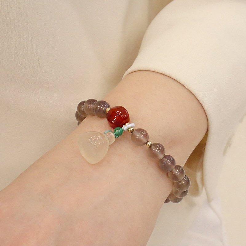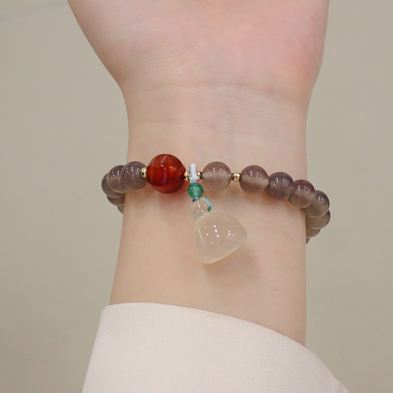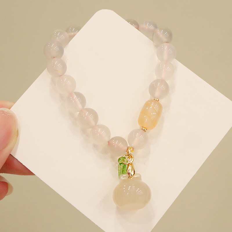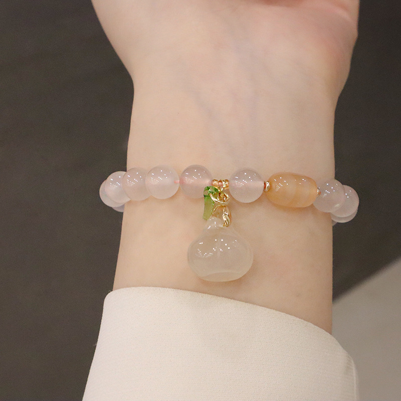 white agate pumpkin green leaf bracelet