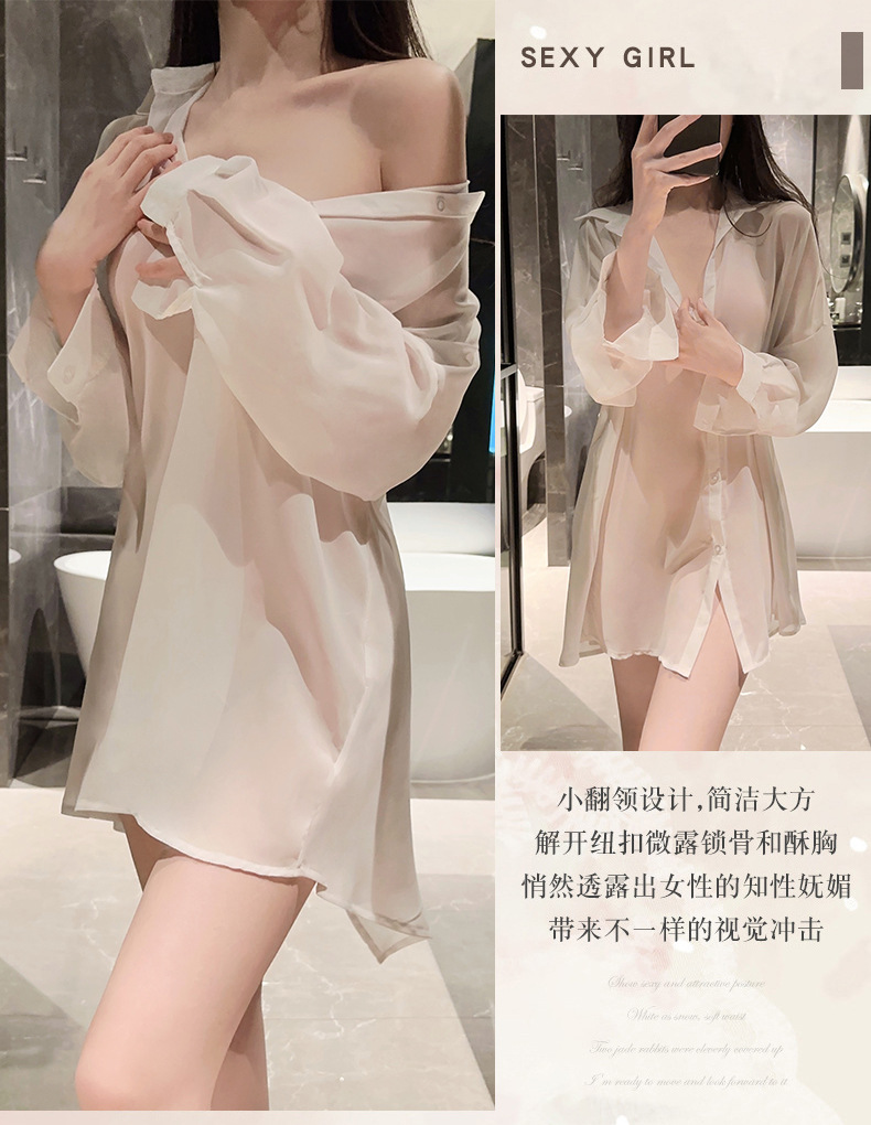 Large Size Sexy Lingerie Women's Sexy See-through Uniform Temptation Large Size Shirt Passion Boyfriend Style Backless Shirt Pajamas