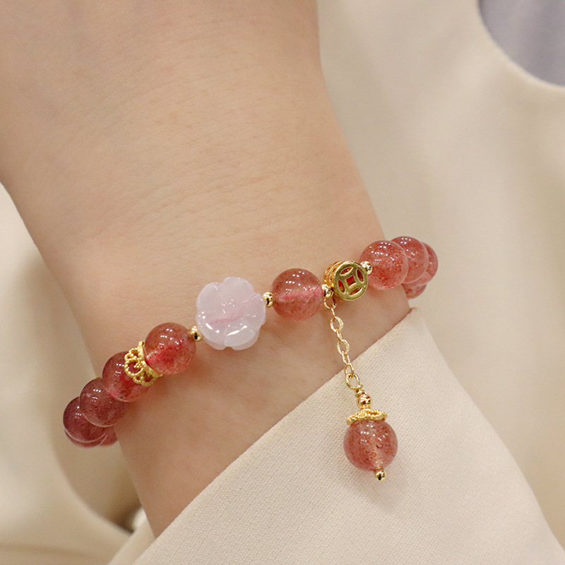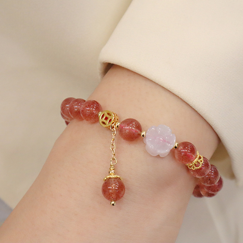 natural strawberry quartz flower bracelet (kj)