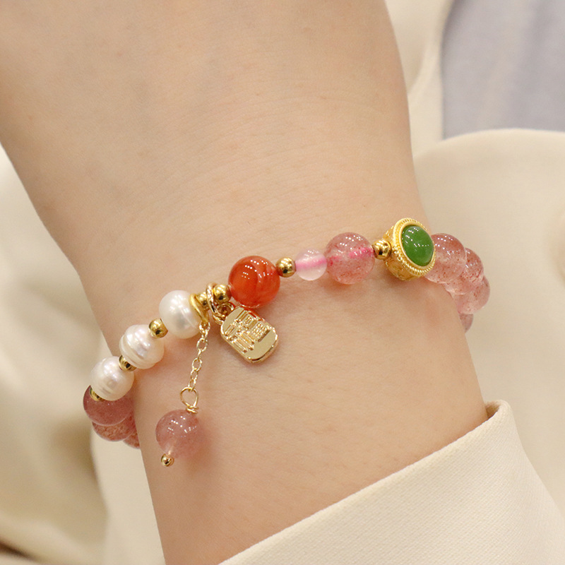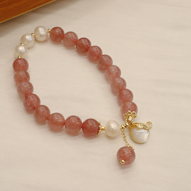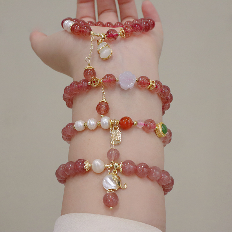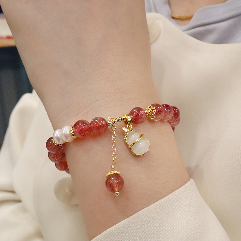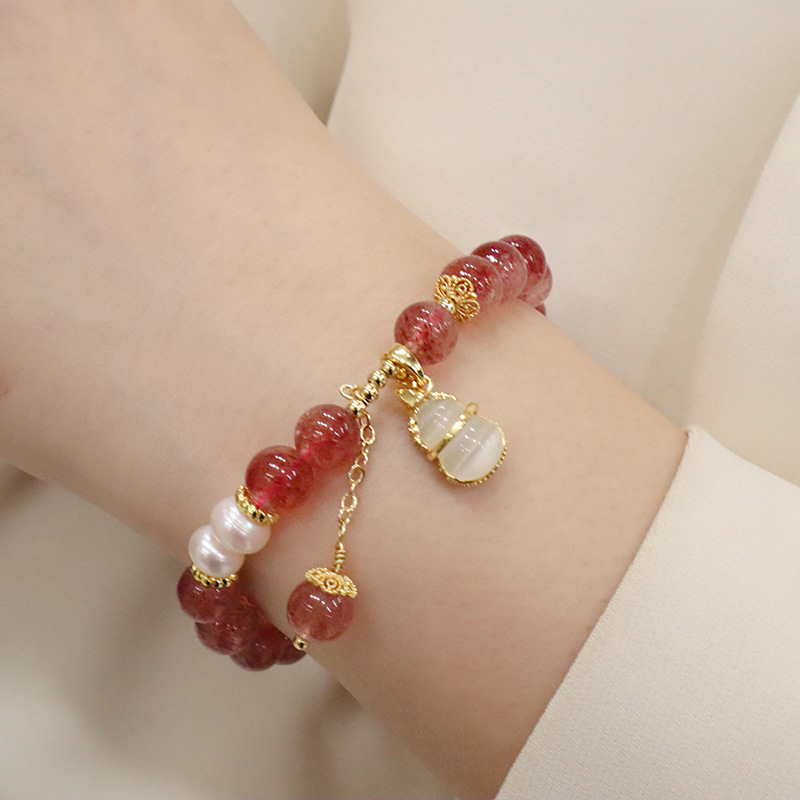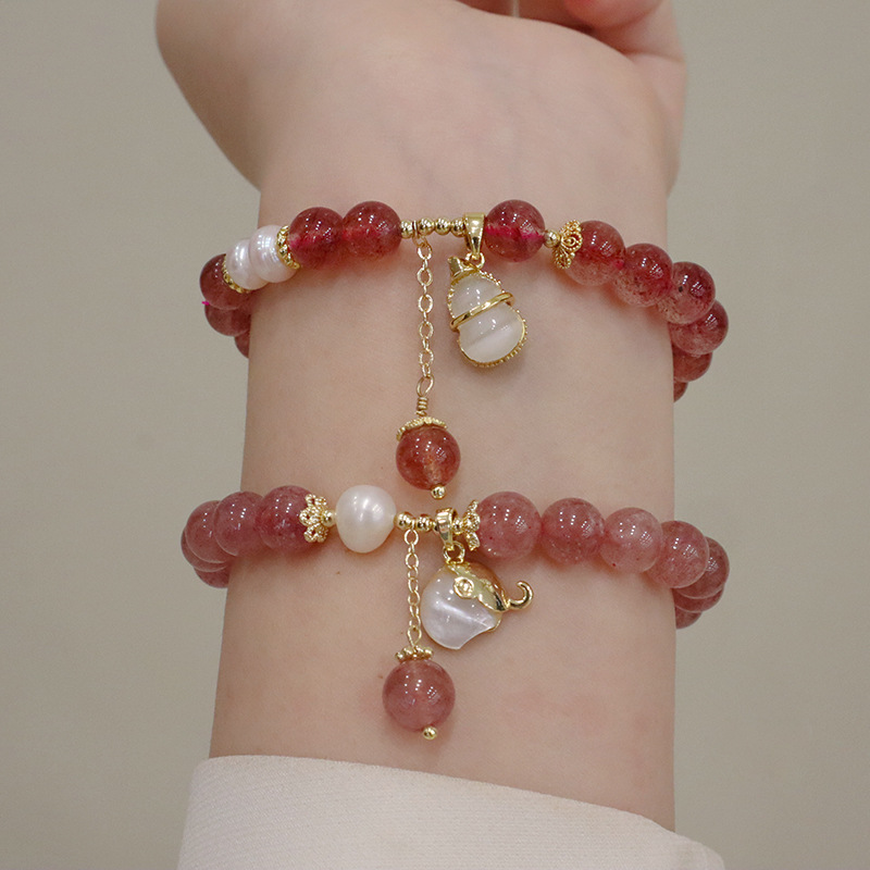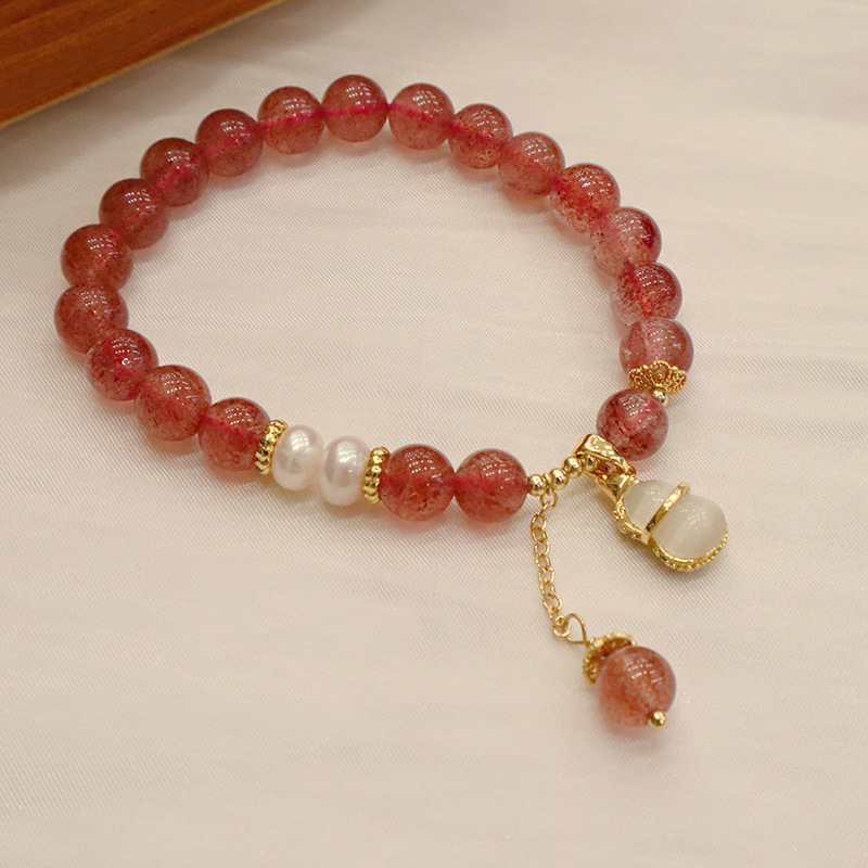 natural strawberry quartz opal gourd bracelet