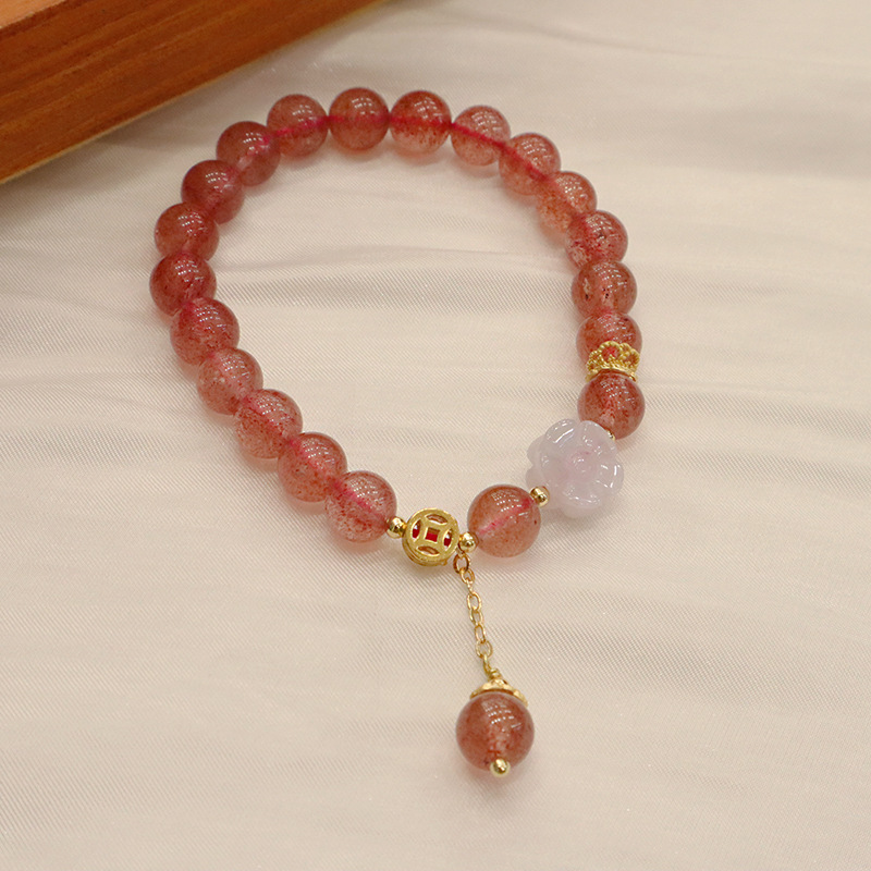 natural strawberry quartz blessing card bracelet (il)