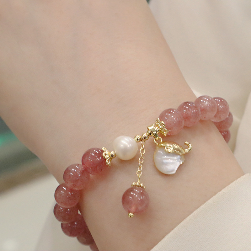 natural strawberry quartz lucky elephant bracelet