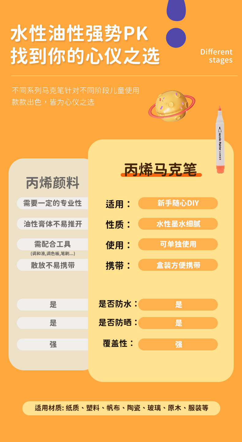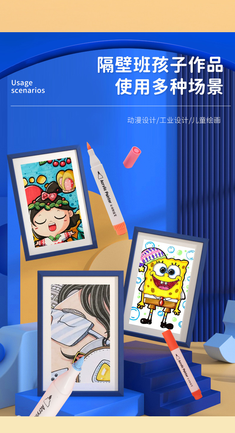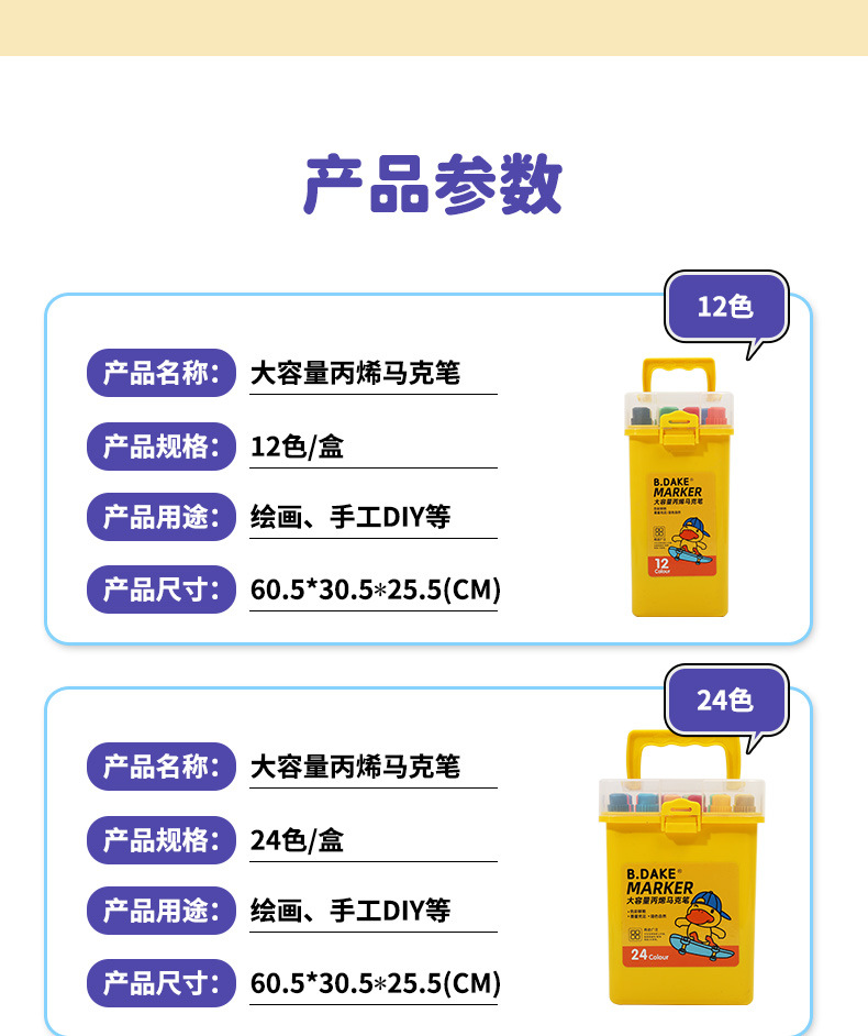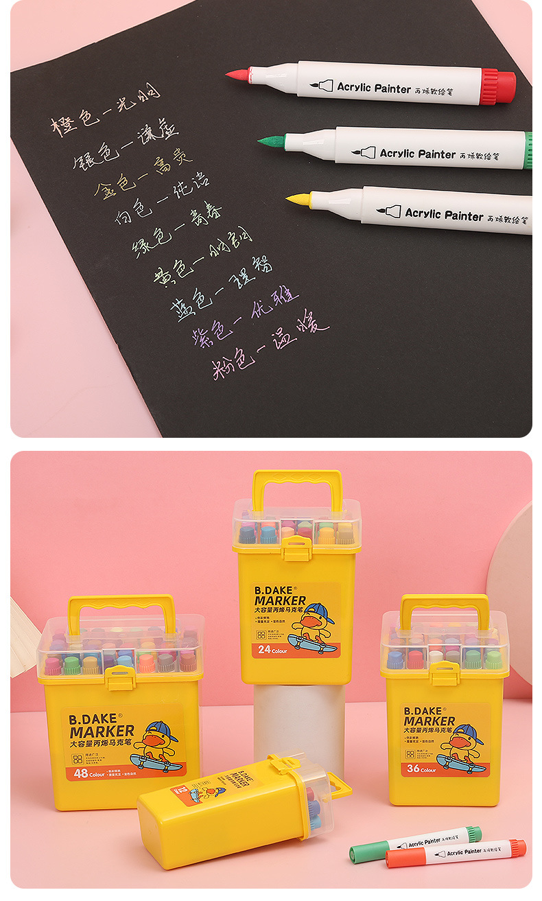 Small Yellow Duck Soft Head Acrylic Marker Pen Student Art Painting Creative Water-Based Marker DIY Graffiti Painting Brush