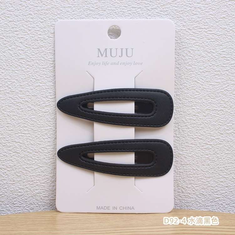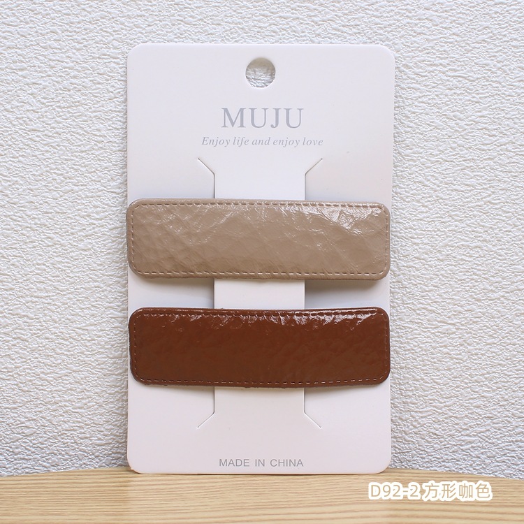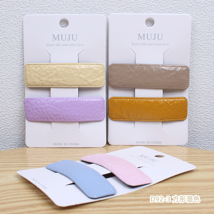New Internet Celebrity Leather Barrettes Elegant PU Leather Side Forehead Bang Clip Card Pair BB Clip Side Clip D92