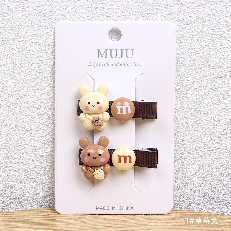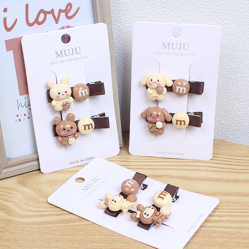 Simple Coffee Color Series Children's Barrettes Korean Fashion Pair Baby Side Clip Cute M Bean Cartoon Bang Clip D157