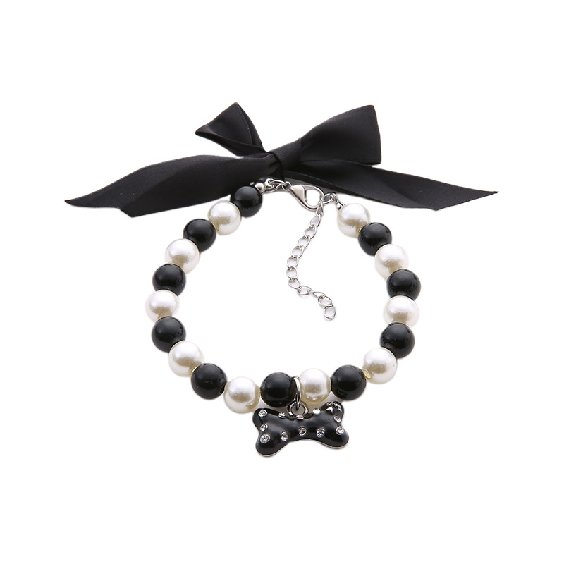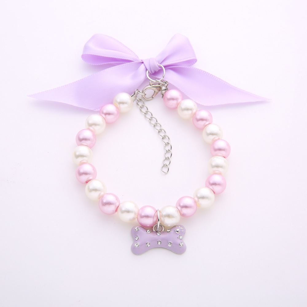 foreign trade in stock bone pet necklace bow pet decorations pearl collar pet lettering identity nameplate
