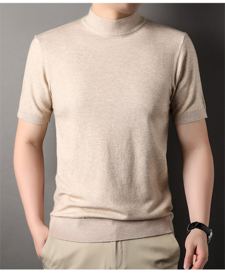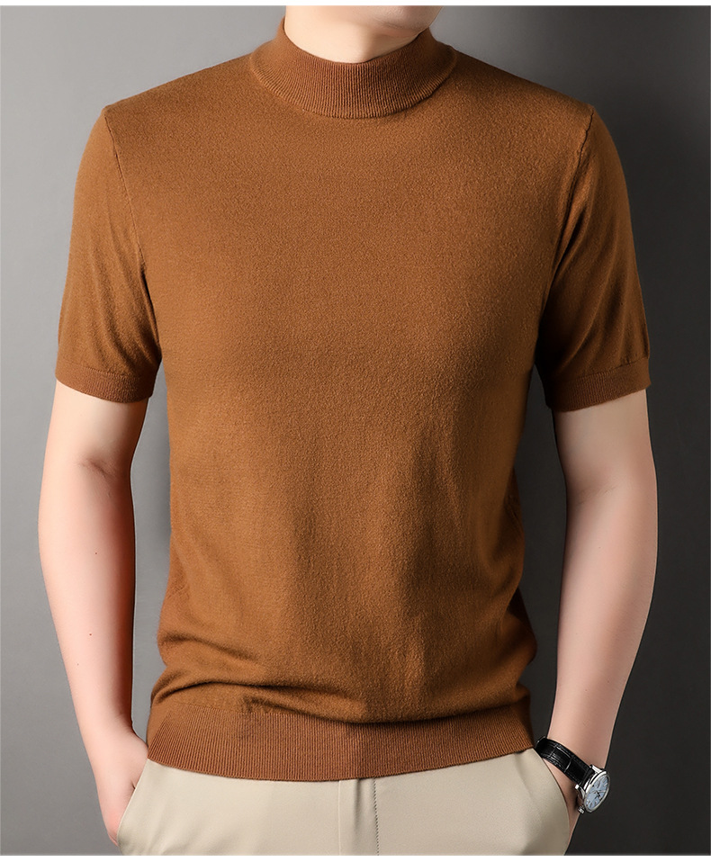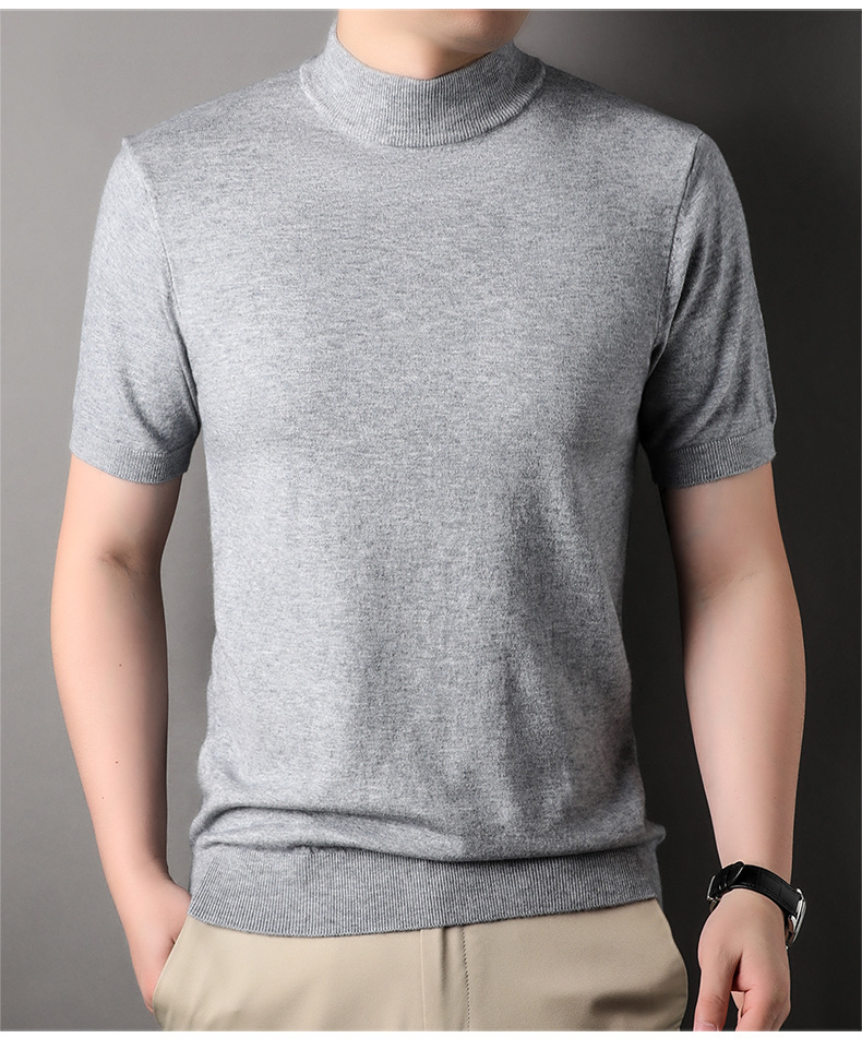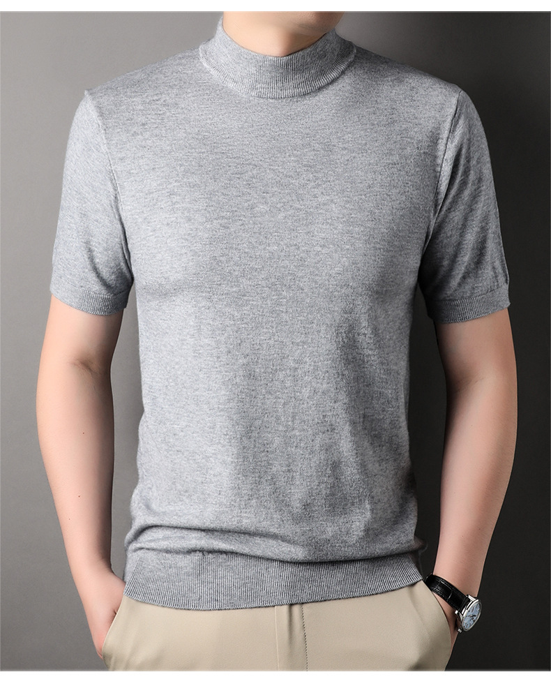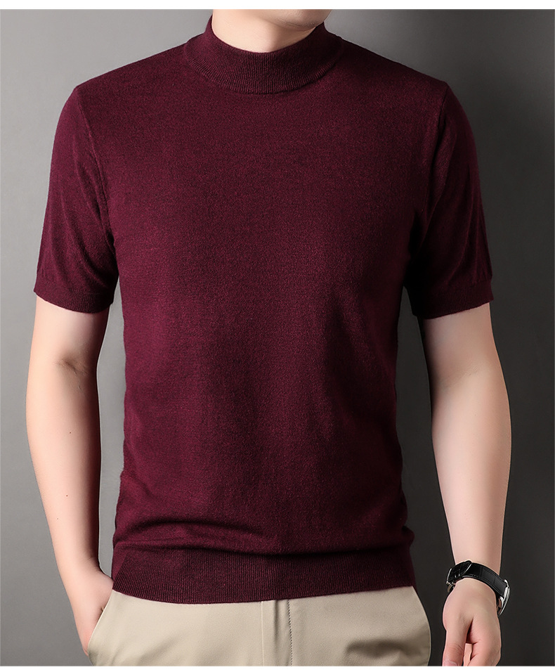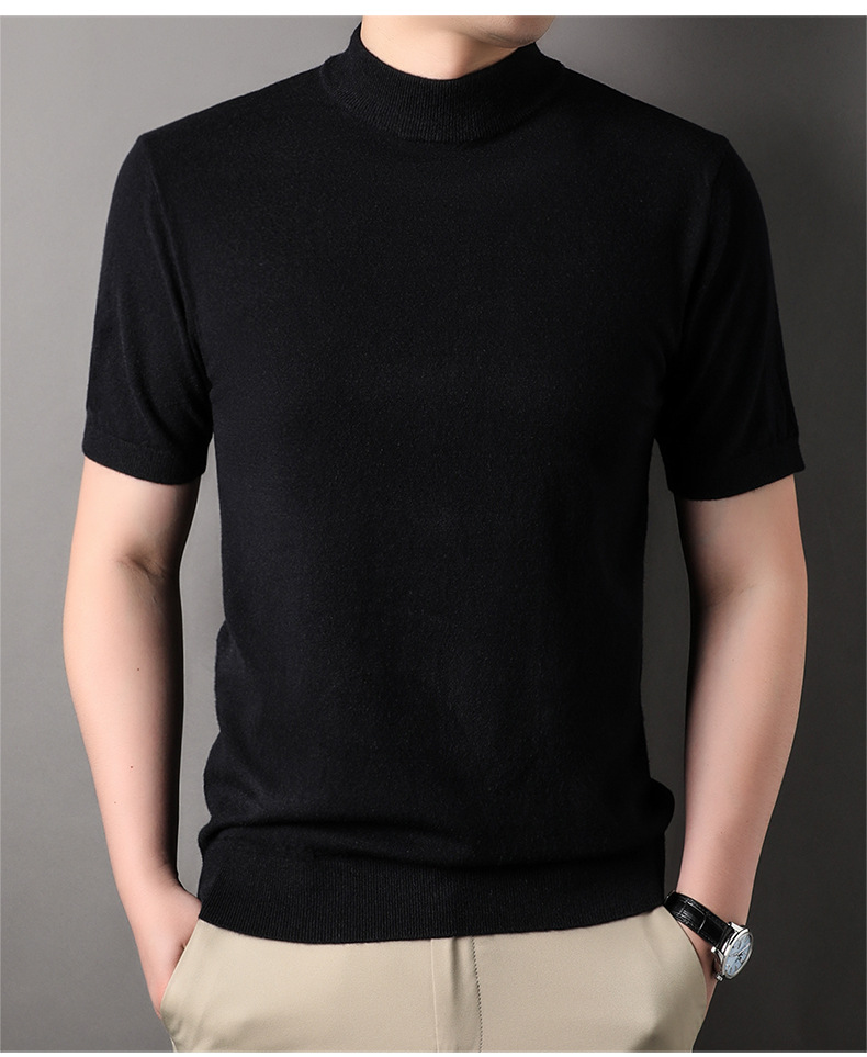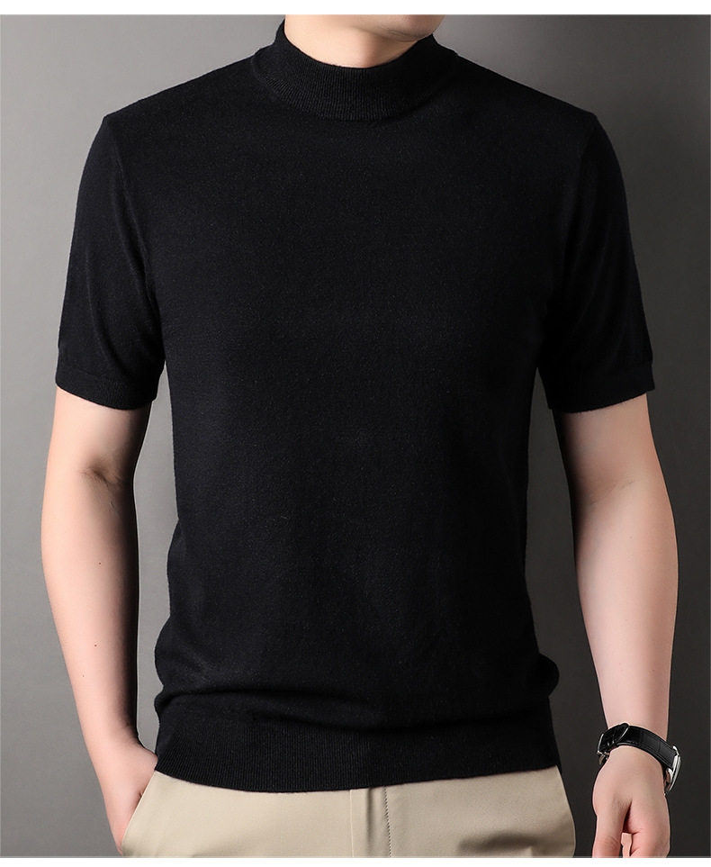 Men's Short-Sleeved Sweater 2023 Autumn and Winter New Pure Color Young and Middle-Aged Bottoming Casual Half-Sleeved Turtleneck Sweater Men's Clothing