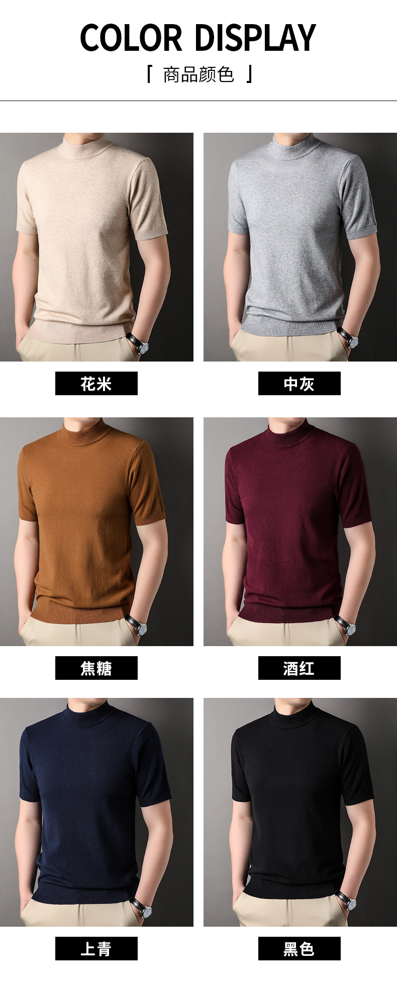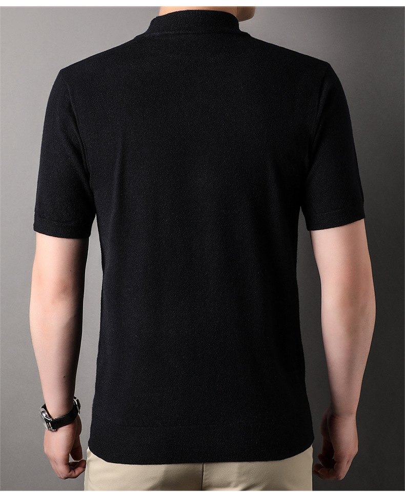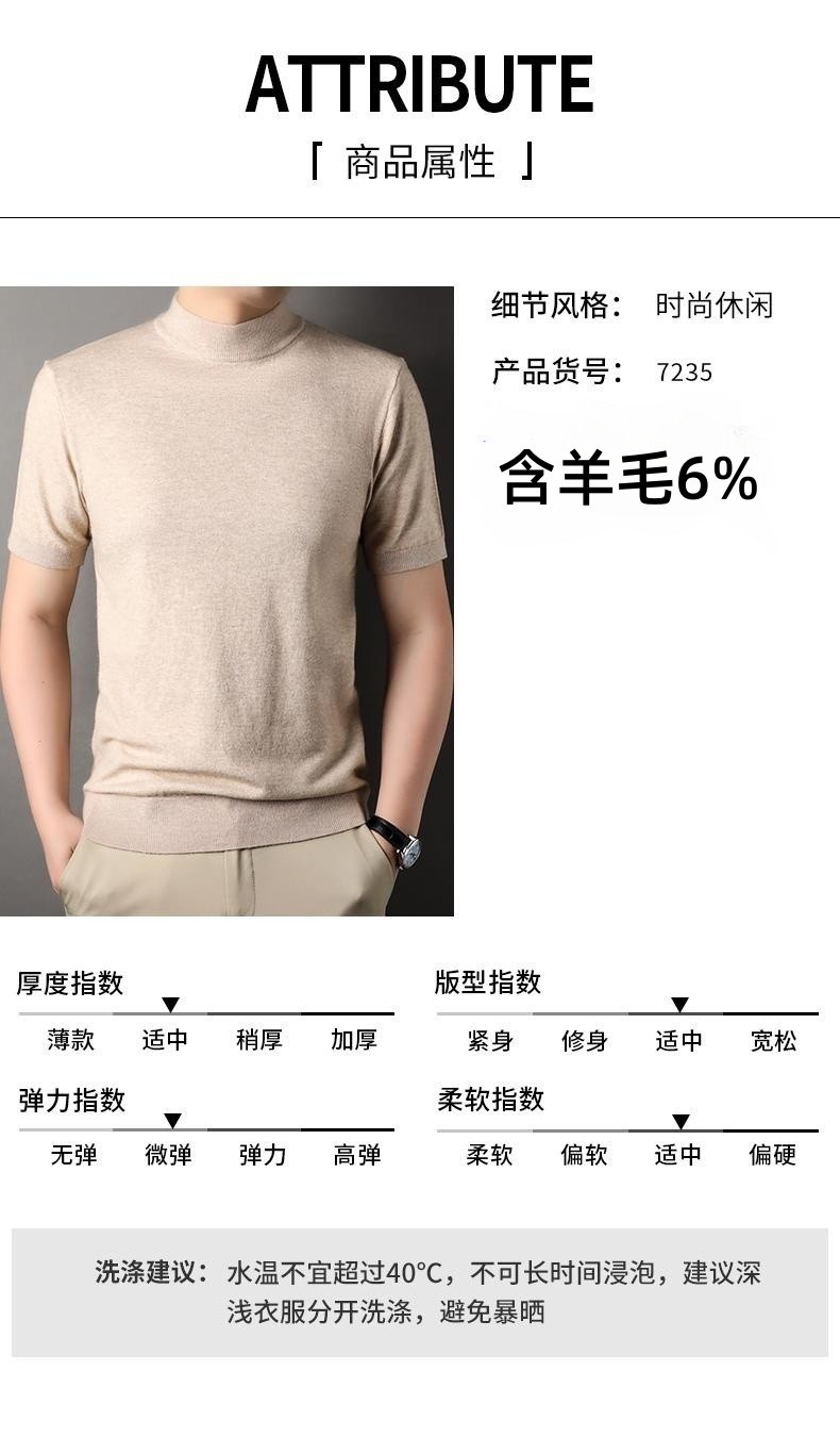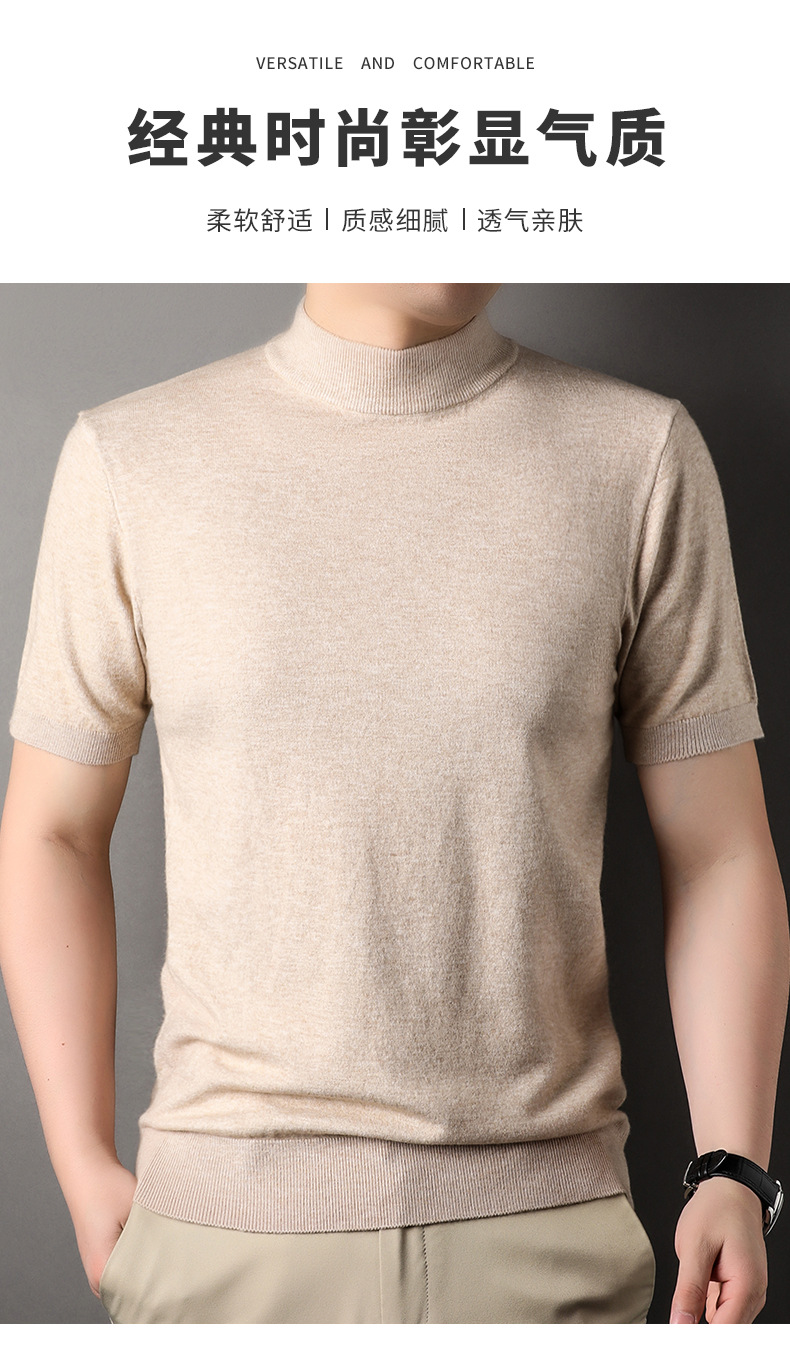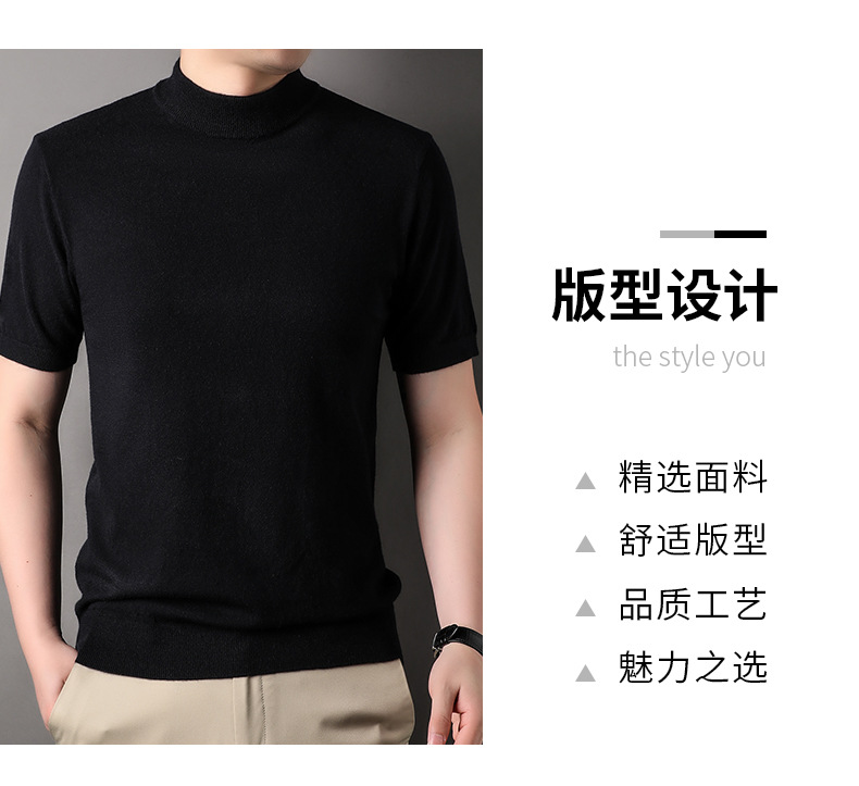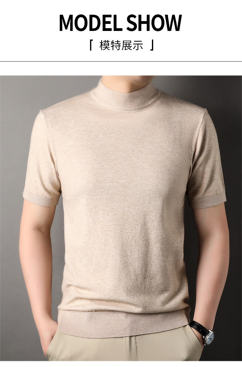 Men's Short-Sleeved Sweater 2023 Autumn and Winter New Pure Color Young and Middle-Aged Bottoming Casual Half-Sleeved Turtleneck Sweater Men's Clothing