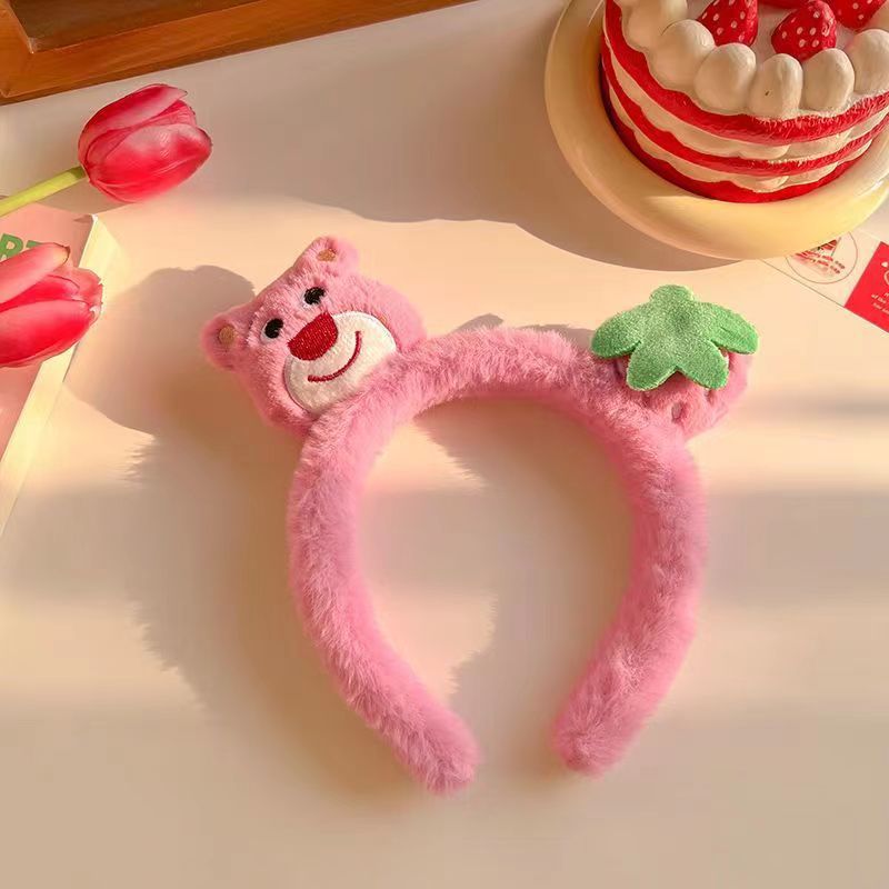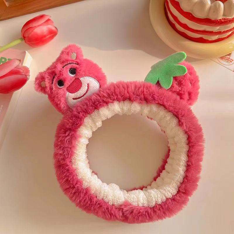 Cartoon Strawberry Bear Plush Cute All Match Hairpin Headband Face Wash Hair Band Cute All-Match Hair Band Hair Tie Headdress