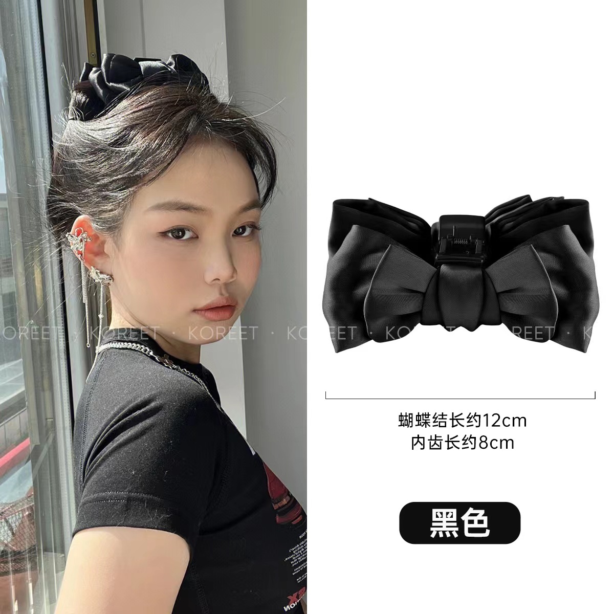 Black Big Bow Grabber Clip Headdress High Sense Barrettes Back Head Shark Clip Hairpin Headband Women's Autumn and Winter