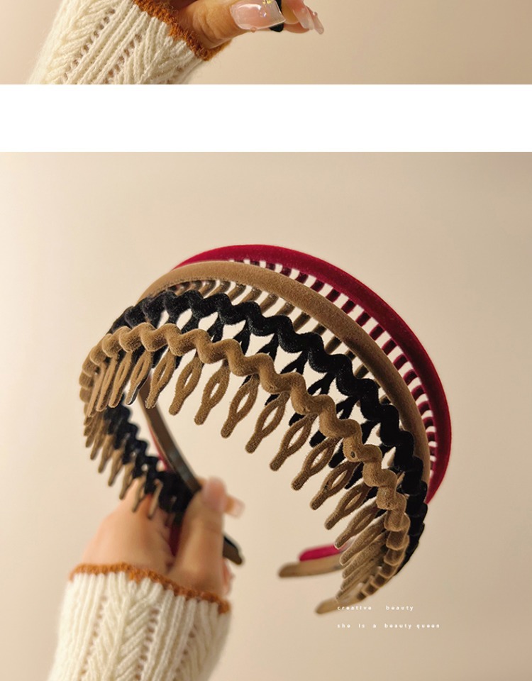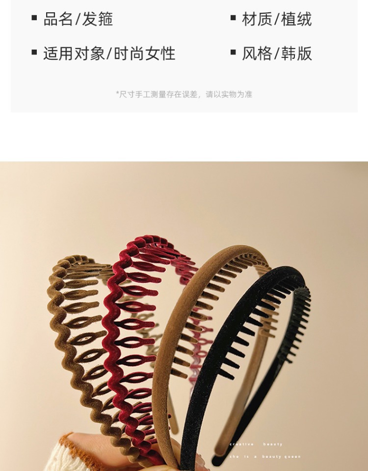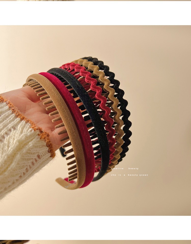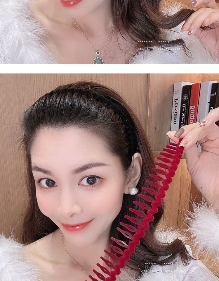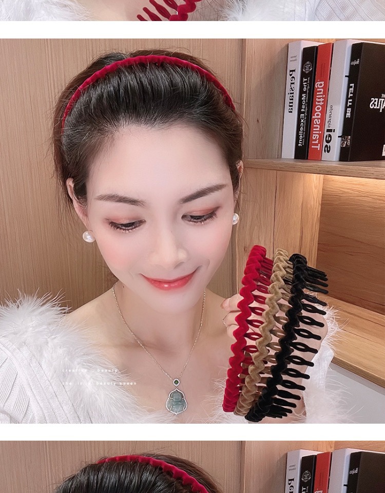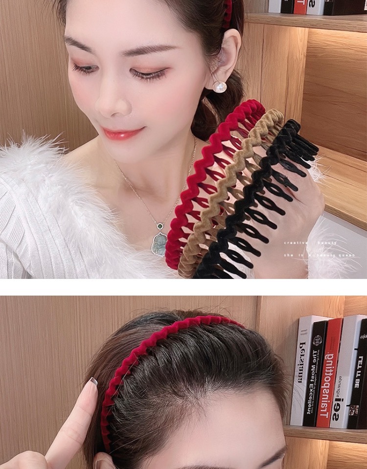 Acrylic Flocking Headband Face Wash Hair Bands 2022 Internet Hot New Women's Toothed Broken Hair Finishing Hair Hoop Headdress