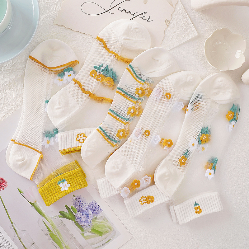 Summer Thin Cotton Bottom Silk Transparent Socks Women's Shallow Mouth Spun Glass Crystal Socks All-Matching Ins Socks Factory Wholesale