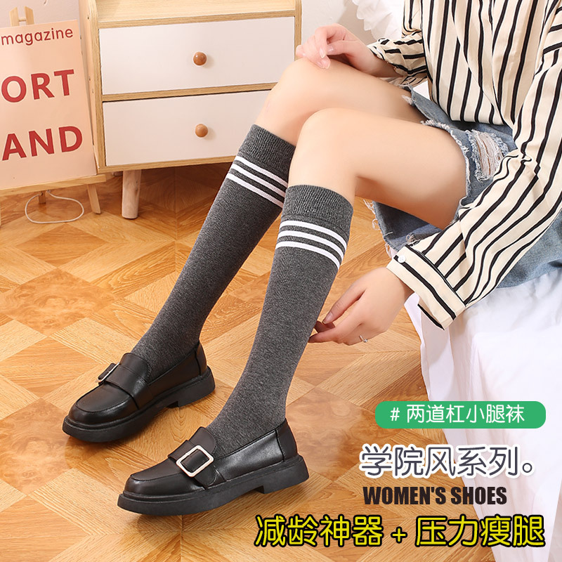 Women's Socks Calf Socks Compression Stockings Student Sports Three Bars Long Socks Bunching Socks Japanese Cotton Socks Factory Wholesale