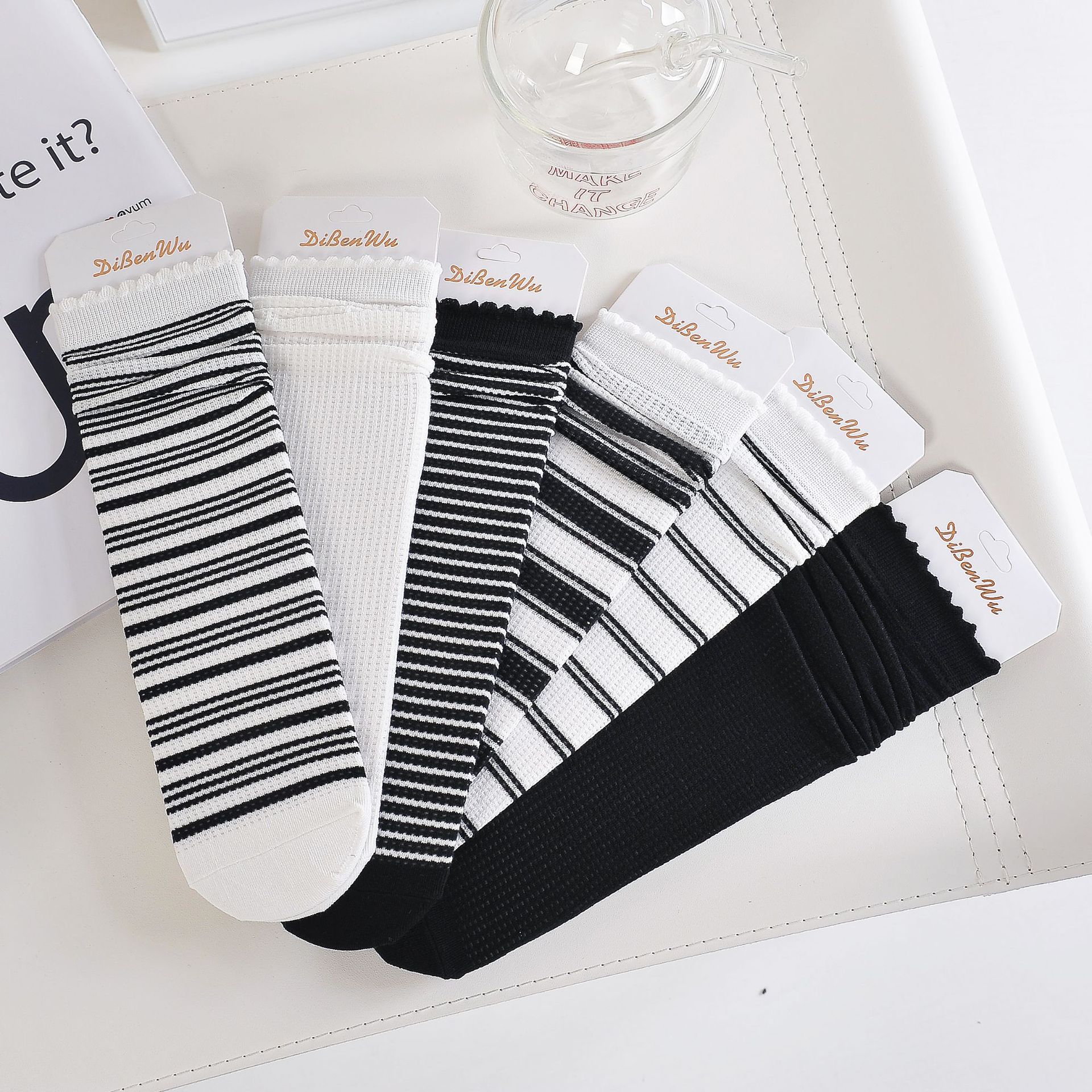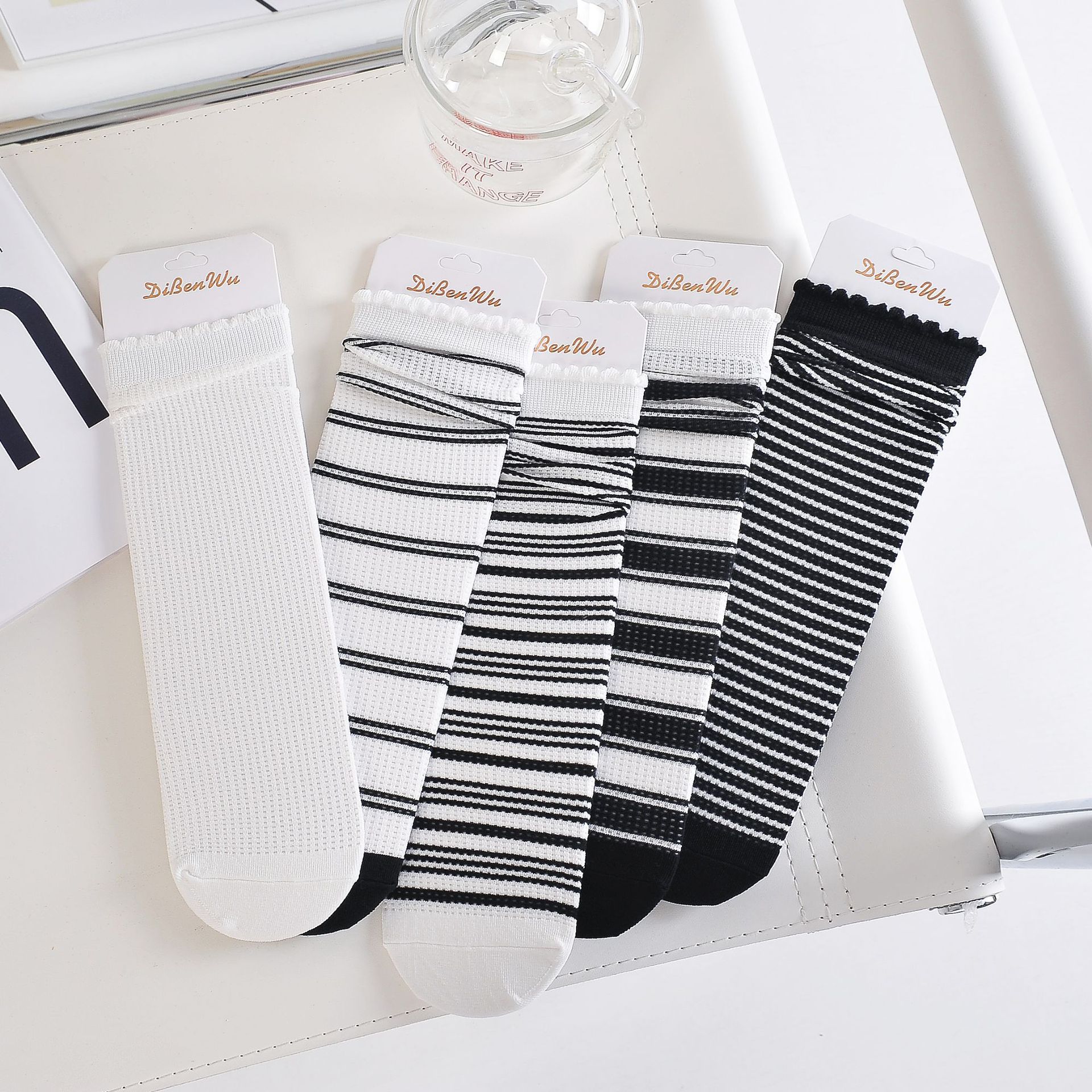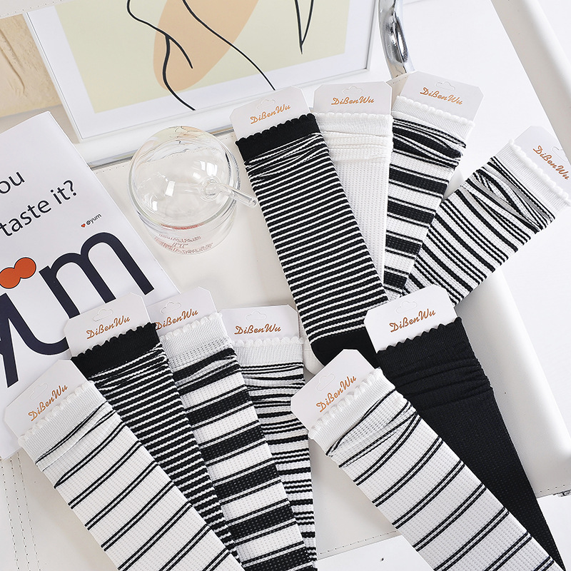 Women's Socks Bunching Socks Summer Thin Black and White Stripes Long Socks Factory Wholesale Ins Fashion Tube Socks JK Straight Cotton Socks