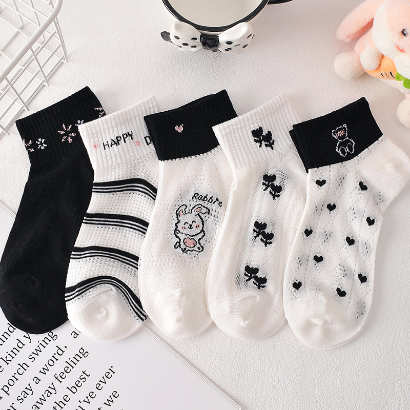 Socks Women's Black and White Mesh Breathable Ankle Socks Cotton Shallow Mouth Summer Thin Ins Fashion Low-Top Ankle Socks Factory Wholesale