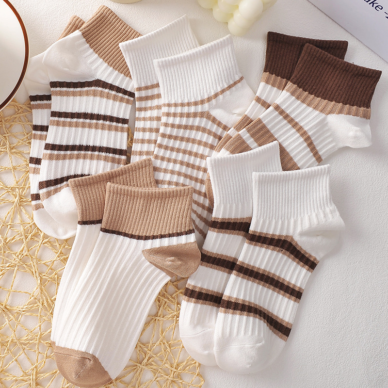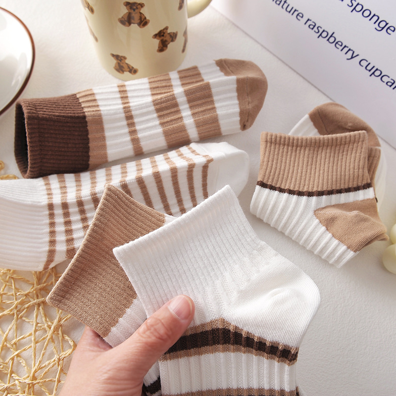 Spring and Summer Socks Women's Boat Socks Korean Style Striped Coffee Color Ins Style College Style Low-Cut Women's Socks Low Top Factory Wholesale