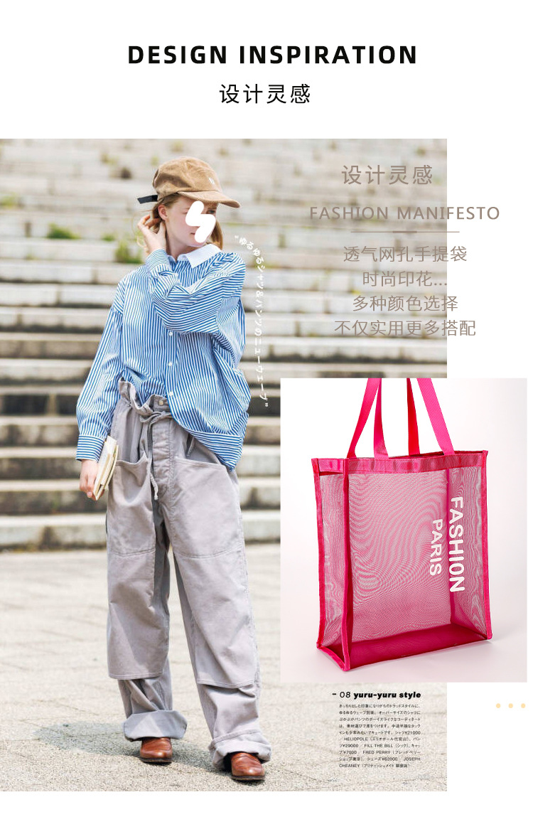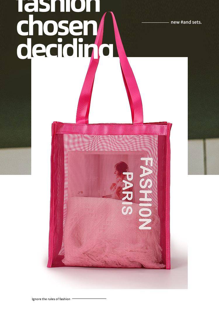 spot goods cross-border hot selling mesh transparent shopping bag ladies gym bag shoulder beach bag yoga travel bag wholesale