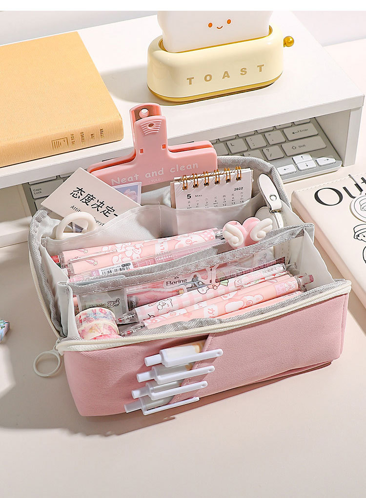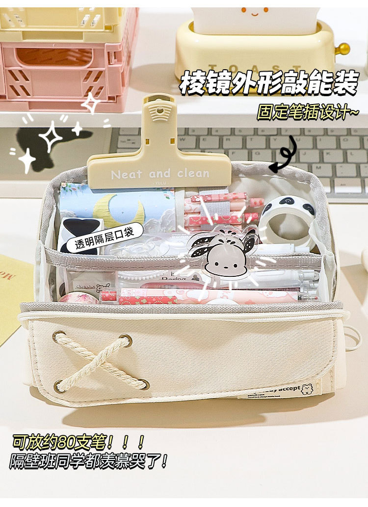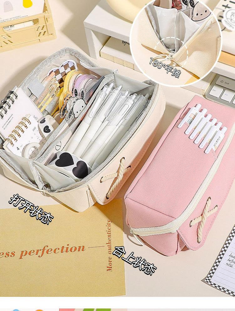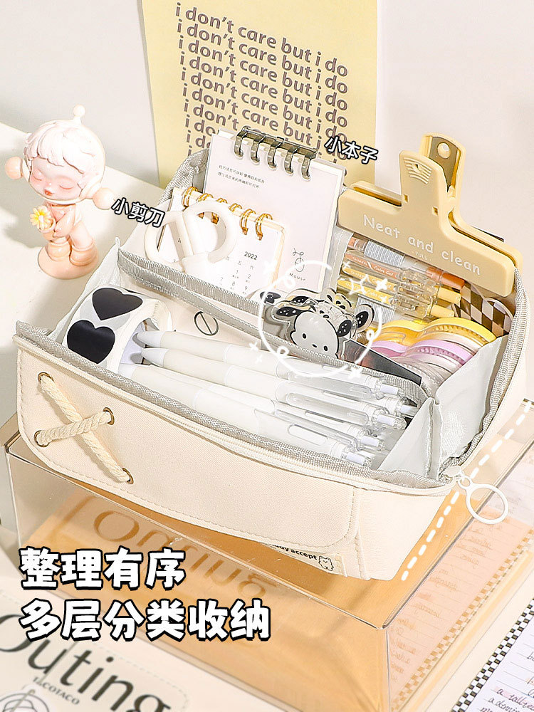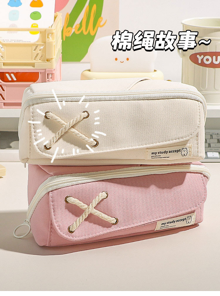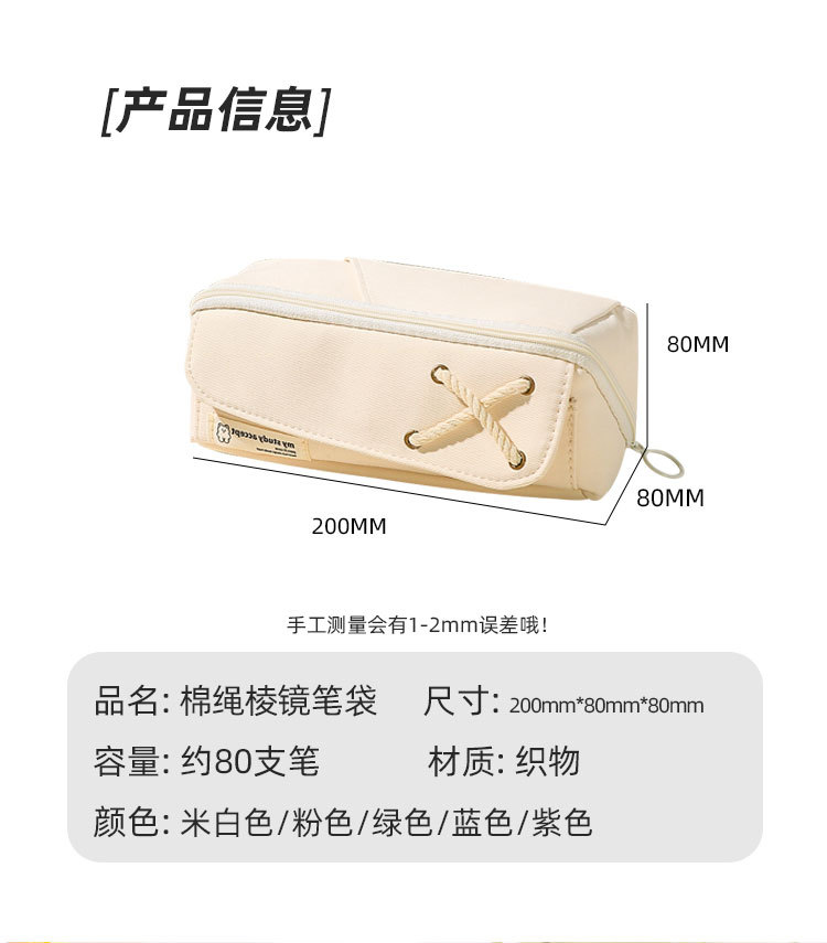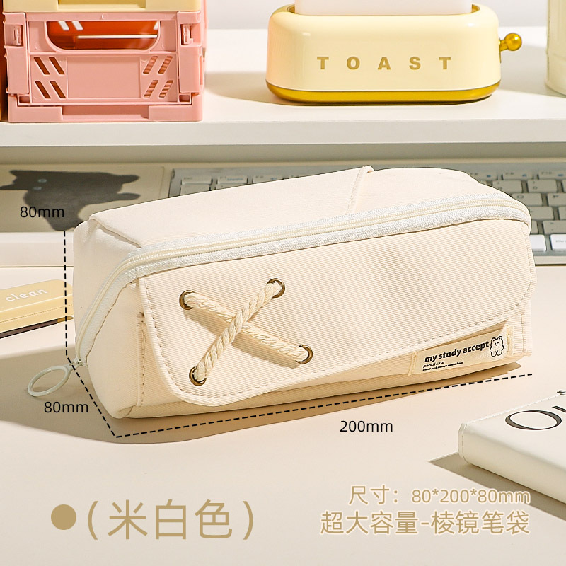 Good-looking Cotton String Prism Pencil Case INS Japanese Large Capacity Simple Pencil Case Primary School Student Girls' Version Stationery Box