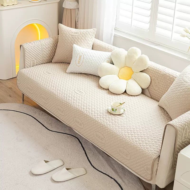 Cotton Sofa Cushion Fabric Embroidery Pastoral Style Four Seasons Universal Non-Slip Simple Modern Solid Wood Leather Sofa Cover Slipcover