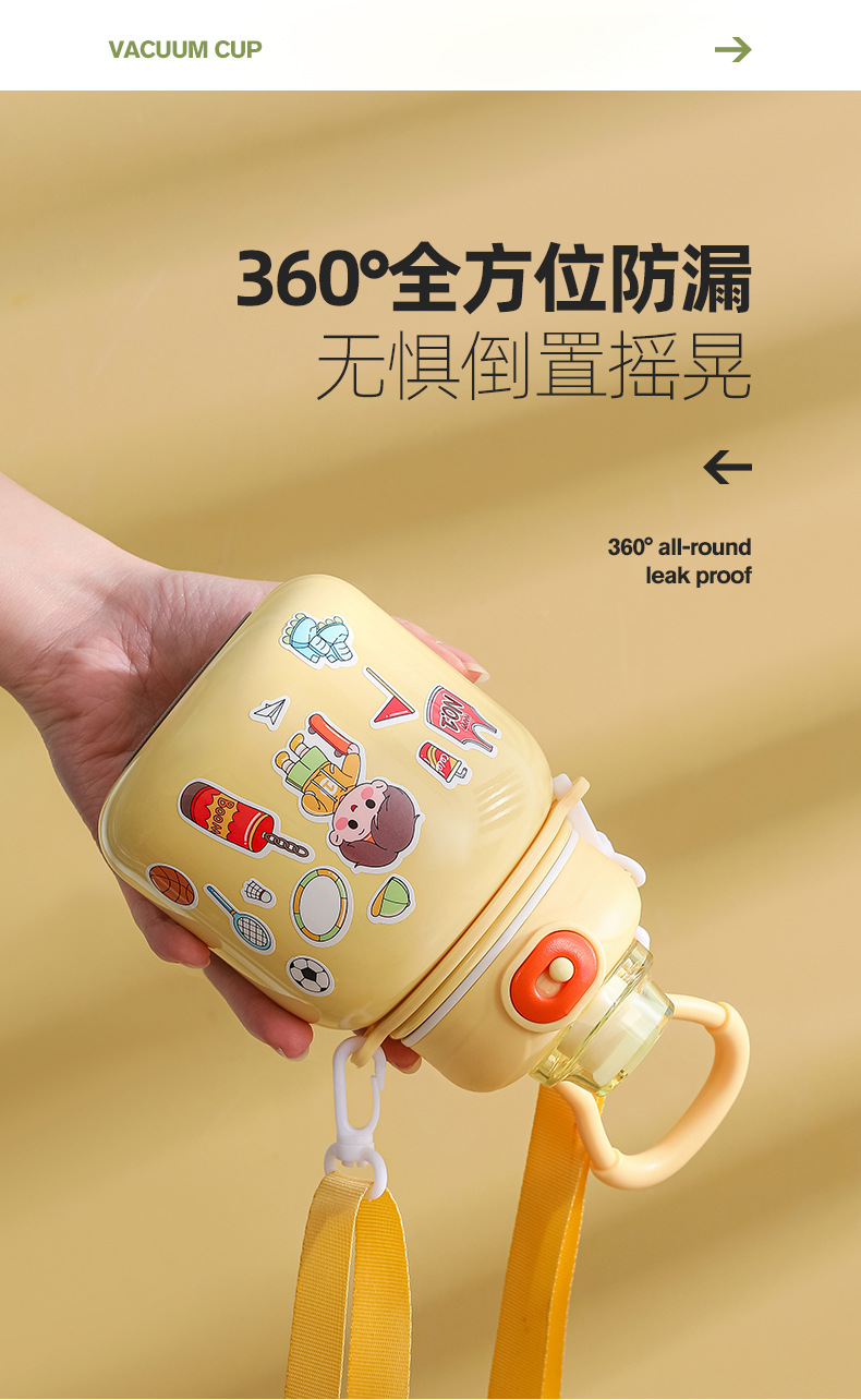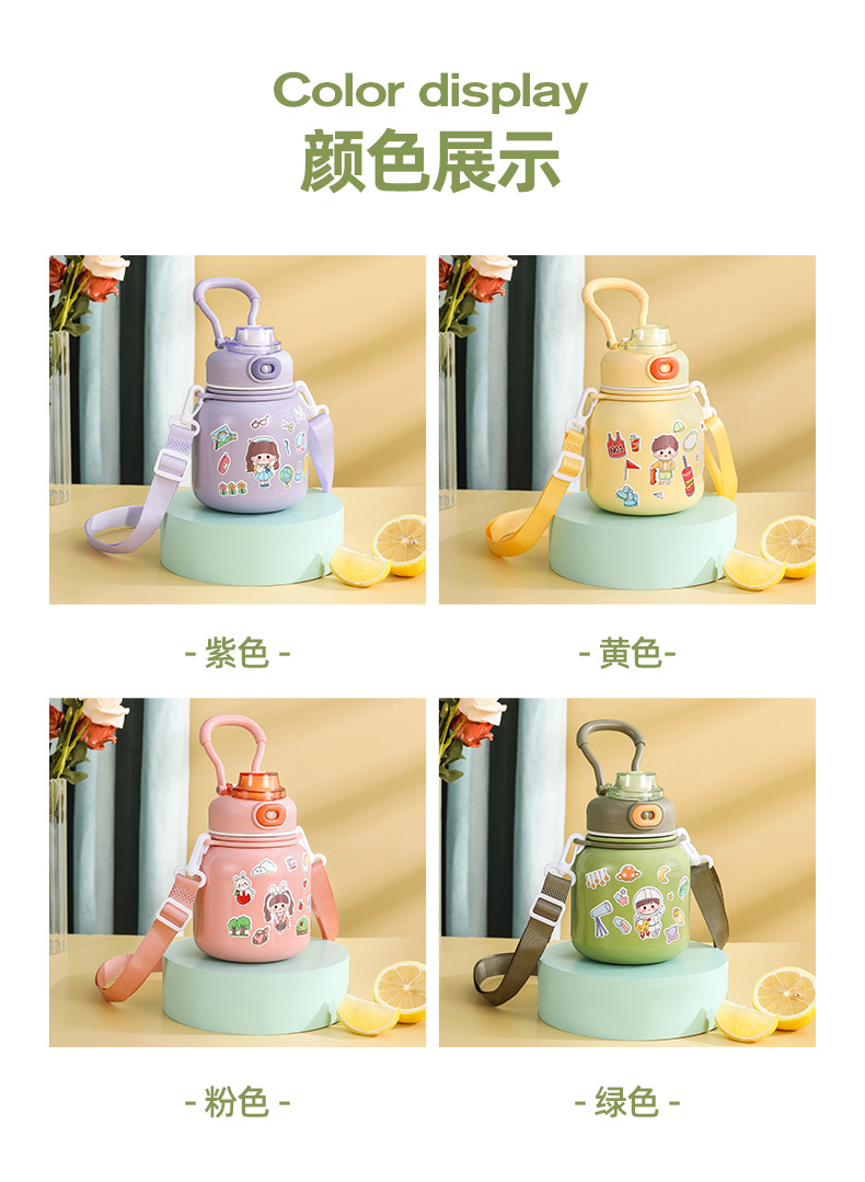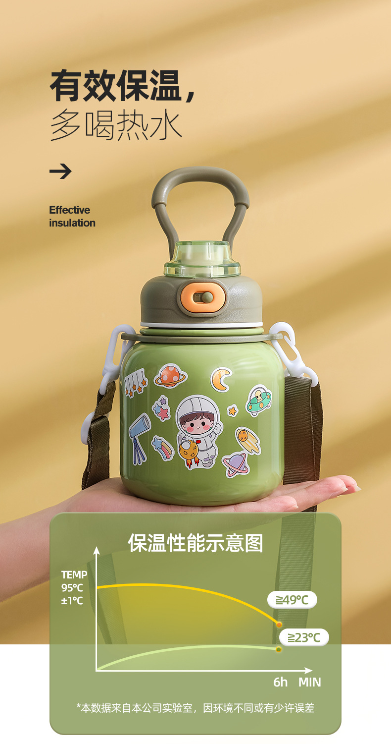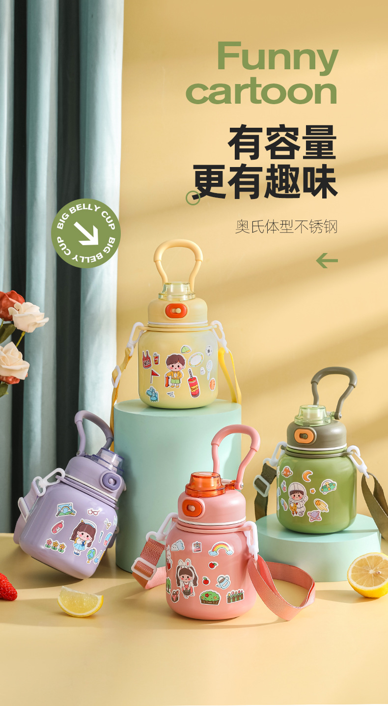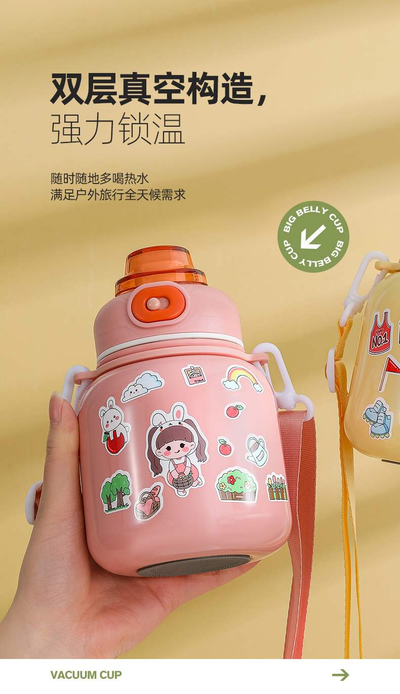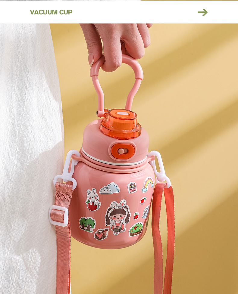 316 Stainless Steel DIY Children's Thermos Mug Portable Outdoor Bounce Cup with Straw Double-Layer Vacuum Cartoon Insulation Pot