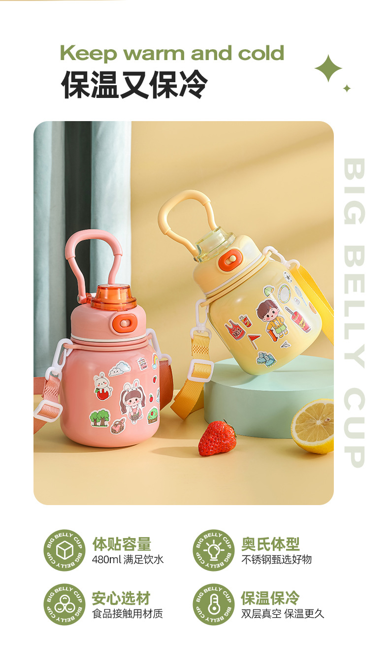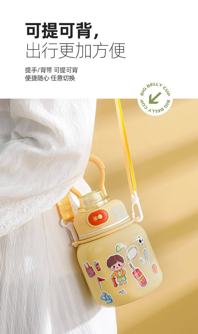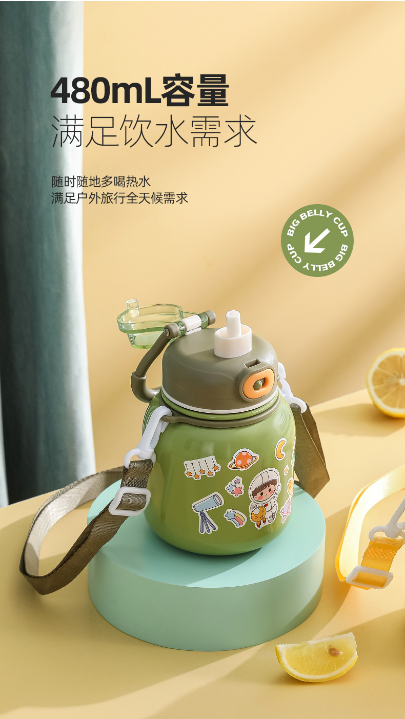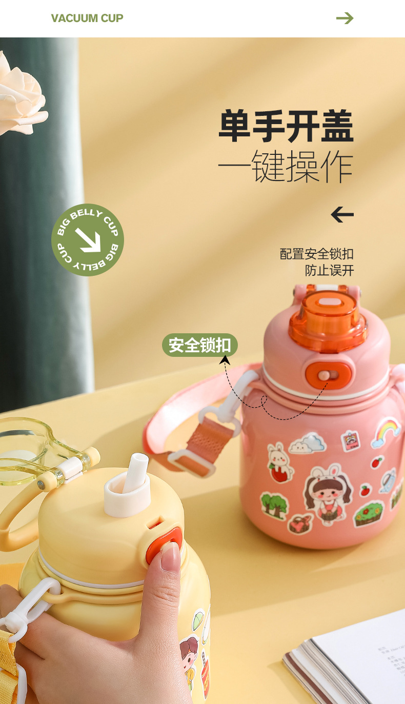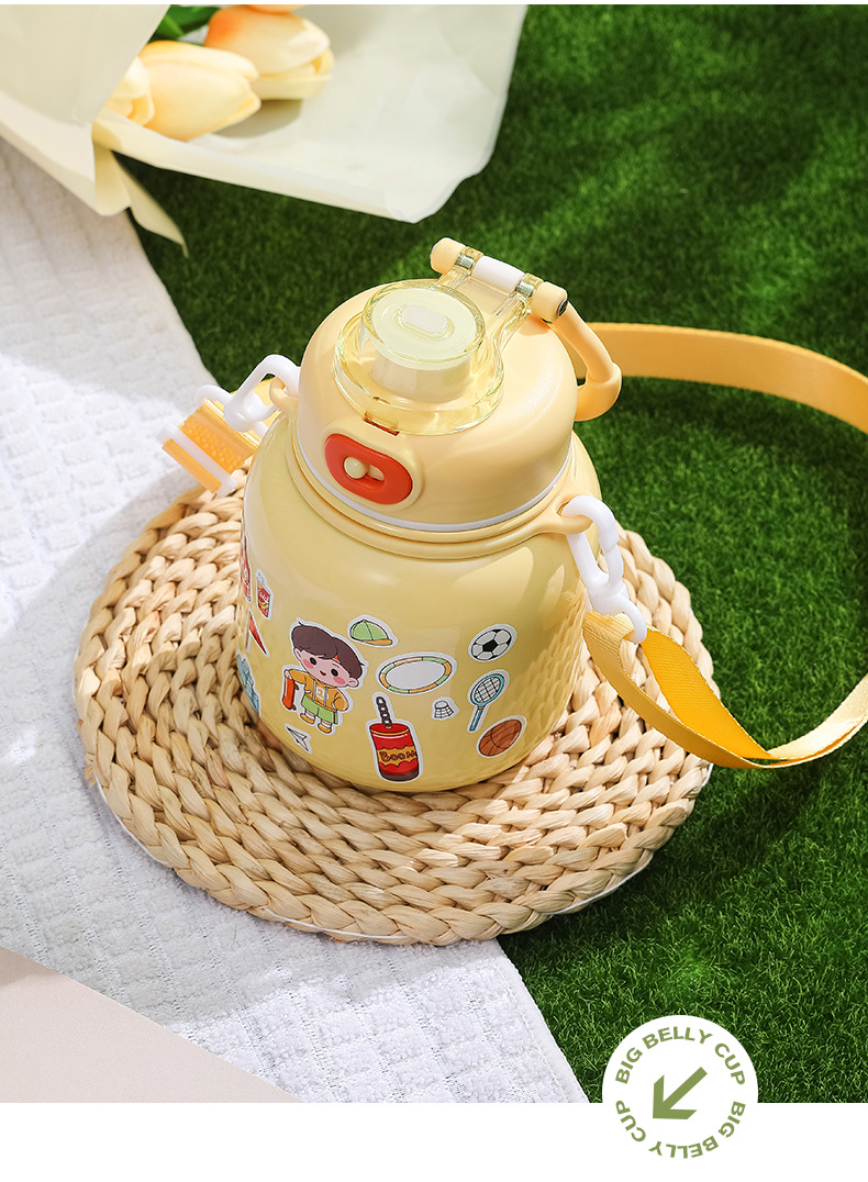 316 Stainless Steel DIY Children's Thermos Mug Portable Outdoor Bounce Cup with Straw Double-Layer Vacuum Cartoon Insulation Pot