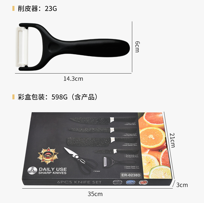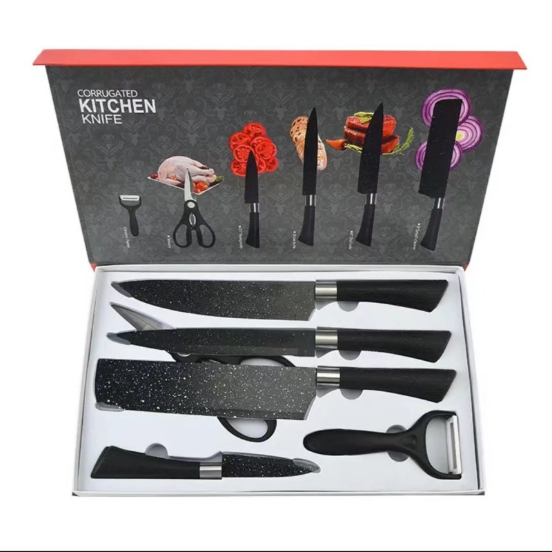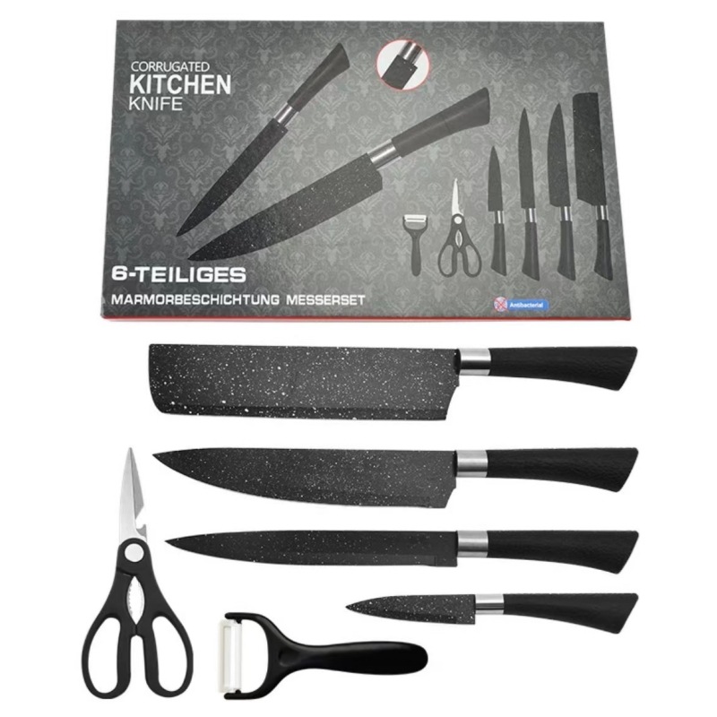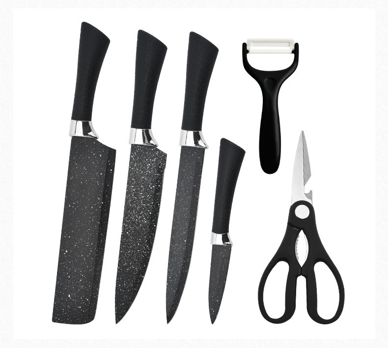 stainless steel household kitchen knife kit painted horseshoe handle starry sky ink rice stone pattern six-piece set