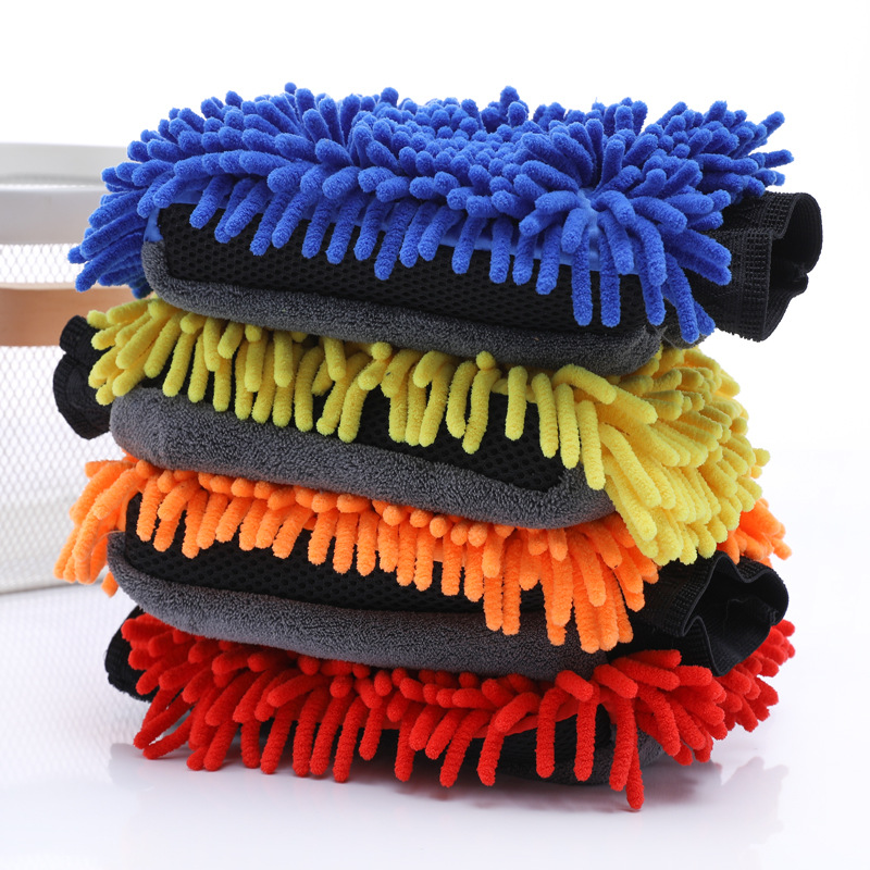 Coral Fleece Thickened Long Velvet Car Wash Double-Sided Gloves Hand-Shaped Brush Chenille Car Cleaning Supplies Car Cleaning Foaming Gloves