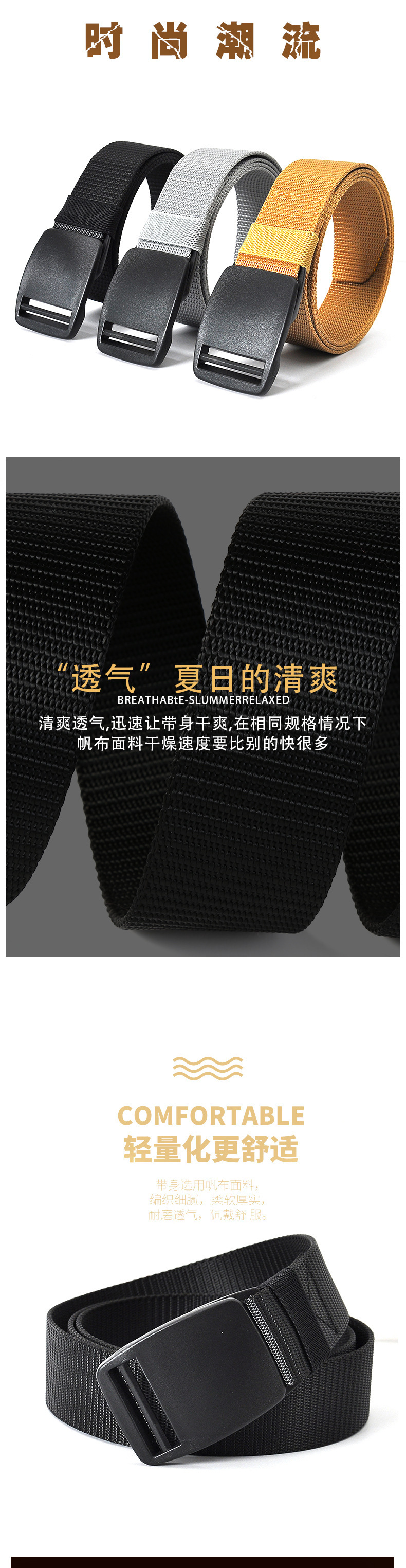 iron-free nylon waistband casual men's leather belt canvas belt men's nylon belt anti-outdoor sports casual belt