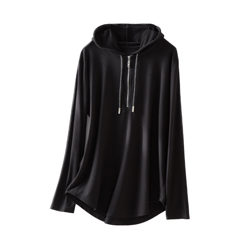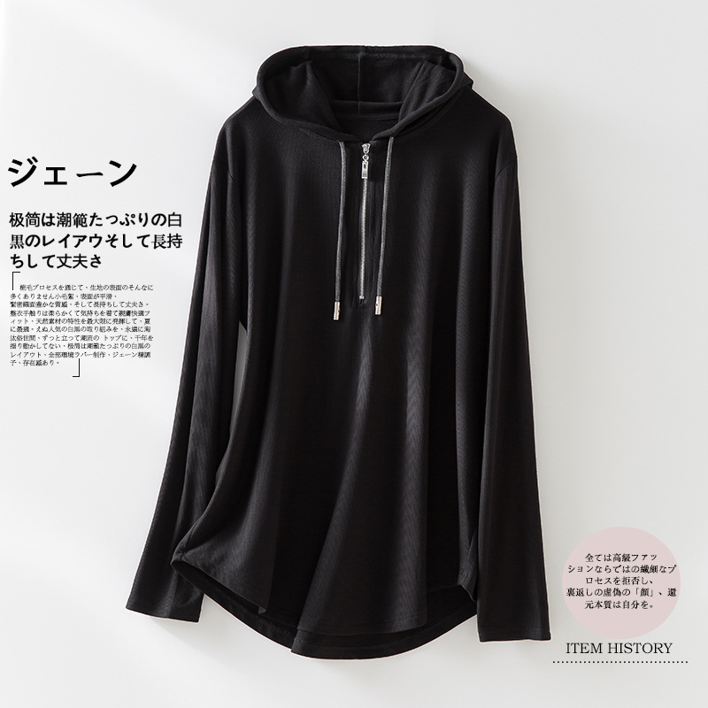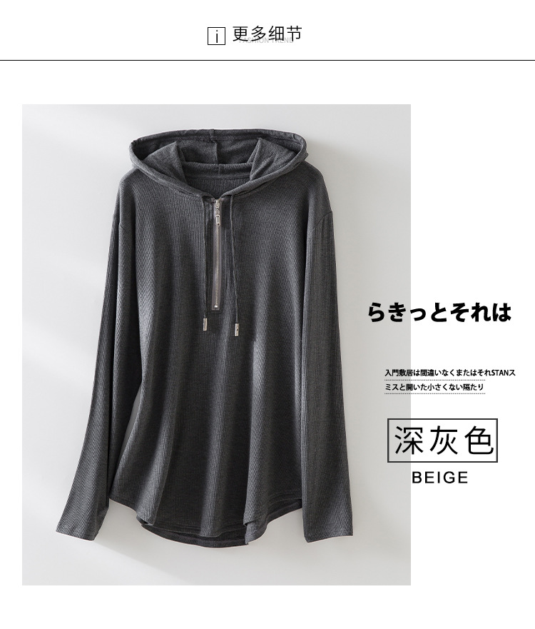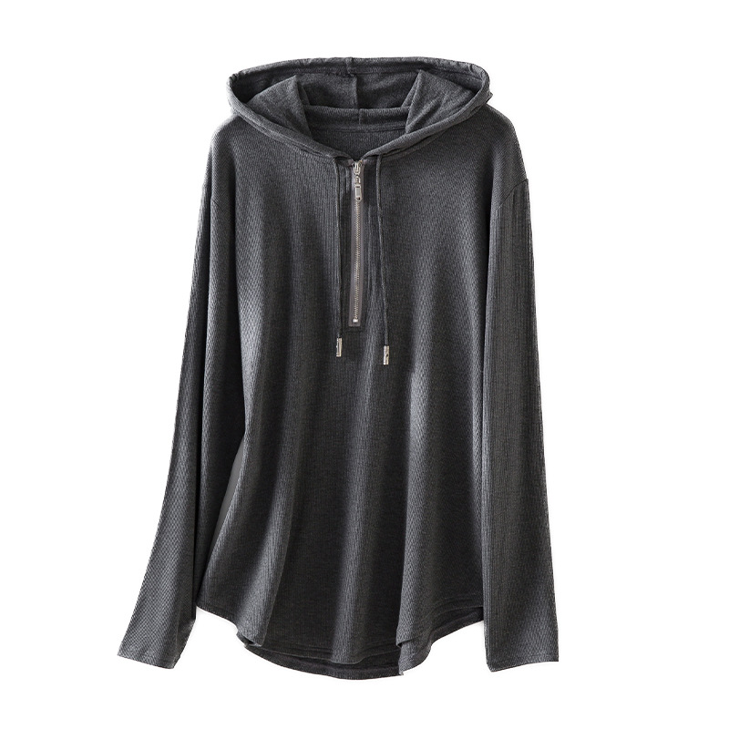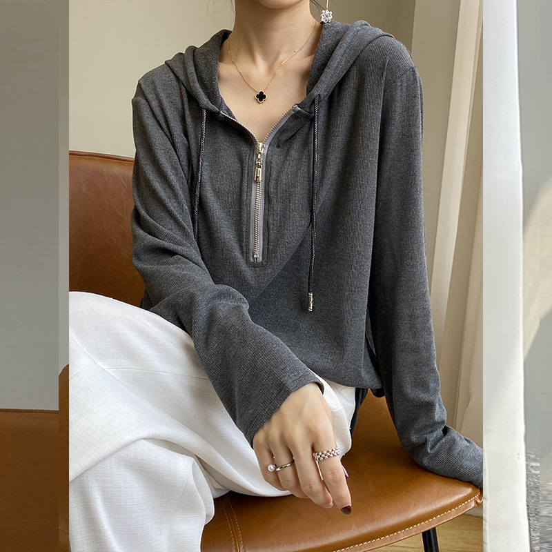 2023 Autumn New Hoodie Women's Casual Simple Half Cardigan Loose Zip Hooded Drawstring Brushed Hoody Women