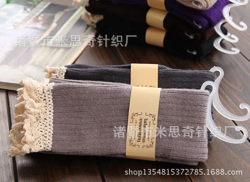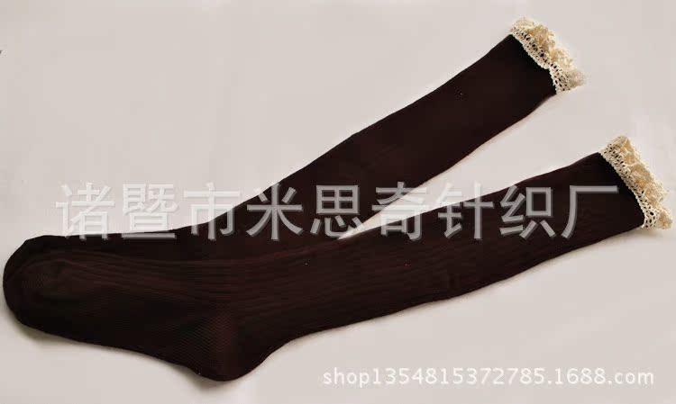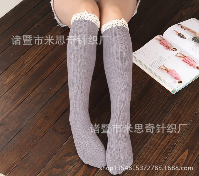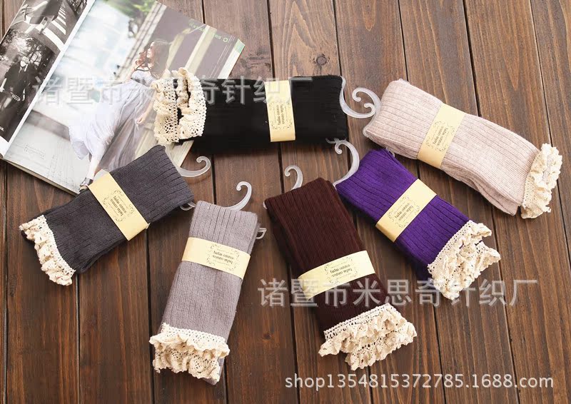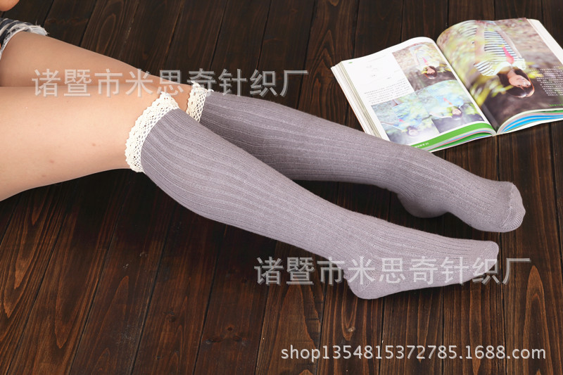 Foreign Trade Lace Bunching Socks Japanese Single Lace over the Knee Women's Socks Cotton Women's Sweet Long Tube Tail Boots Knitted Socks