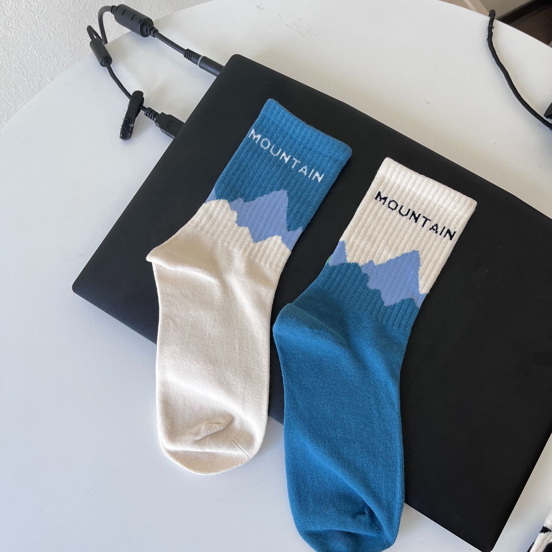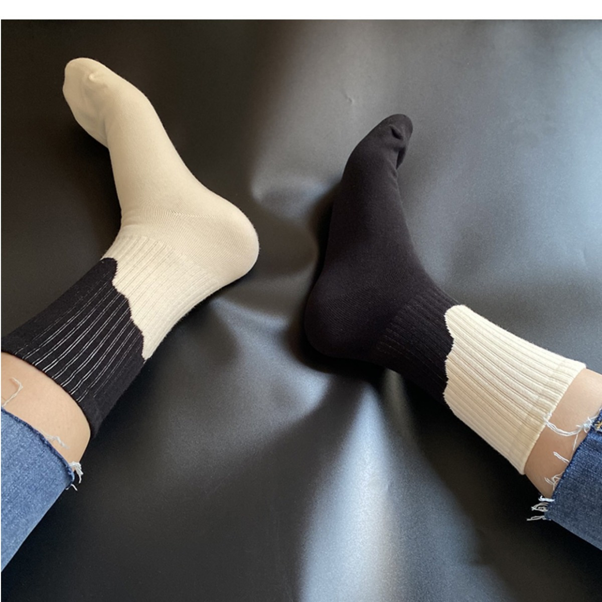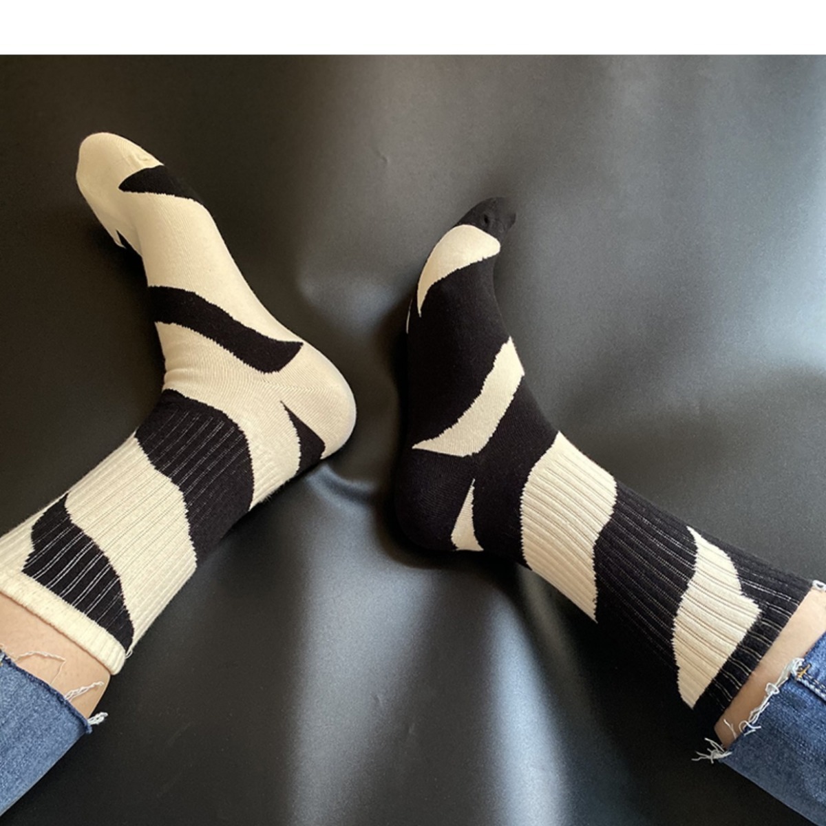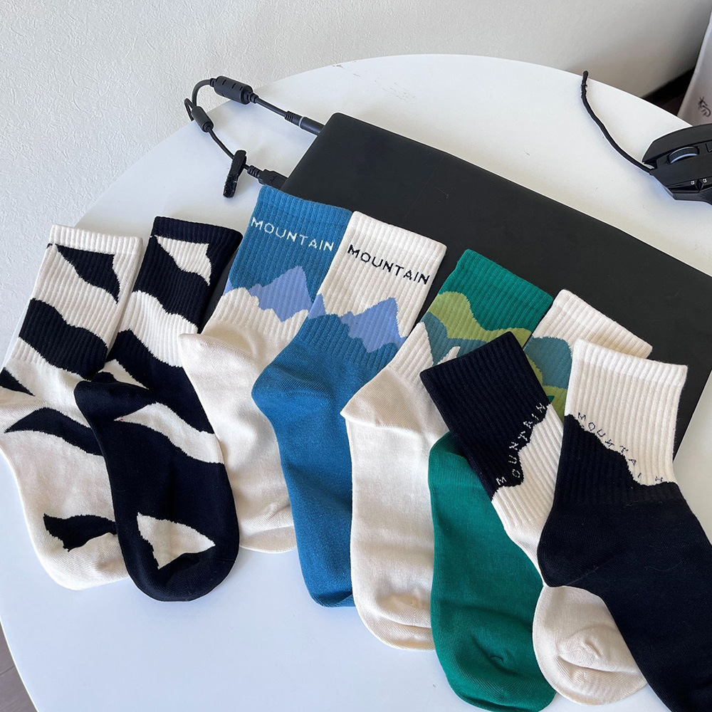 Socks Men's Middle Tube Socks Women's Spring/Summer Long Socks Black and White Striped Color Matching Japanese and Korean Style All-Matching Autumn and Winter All-Matching Trendy Socks