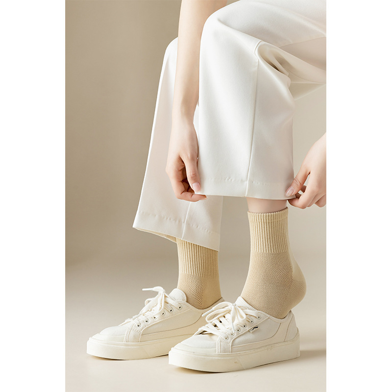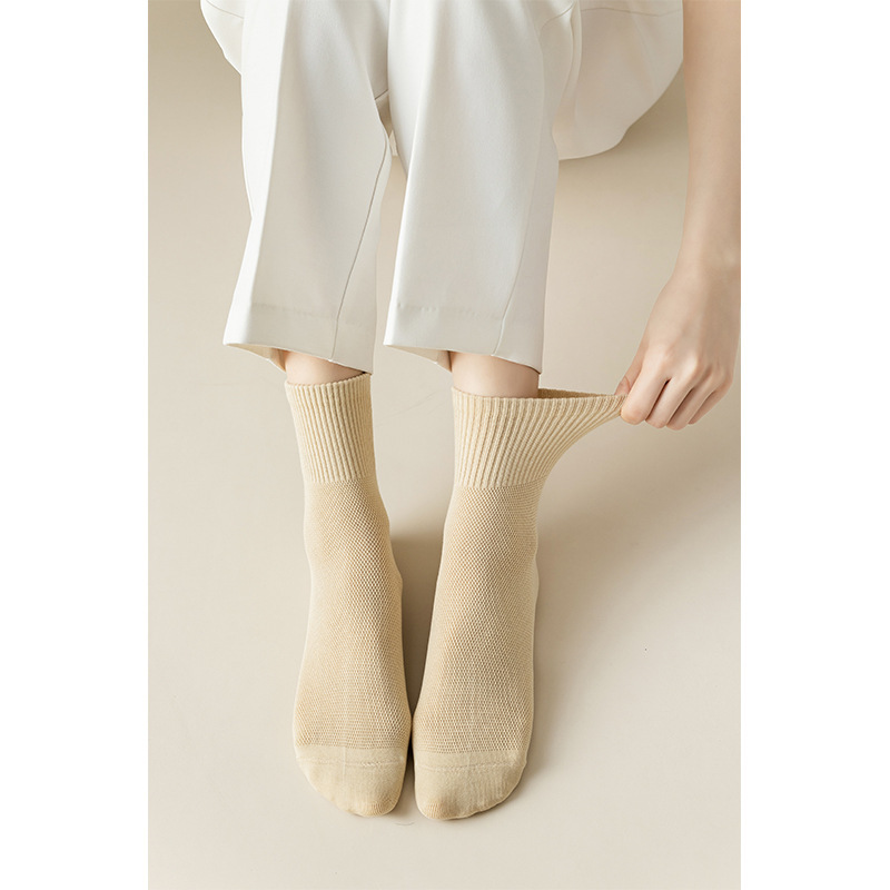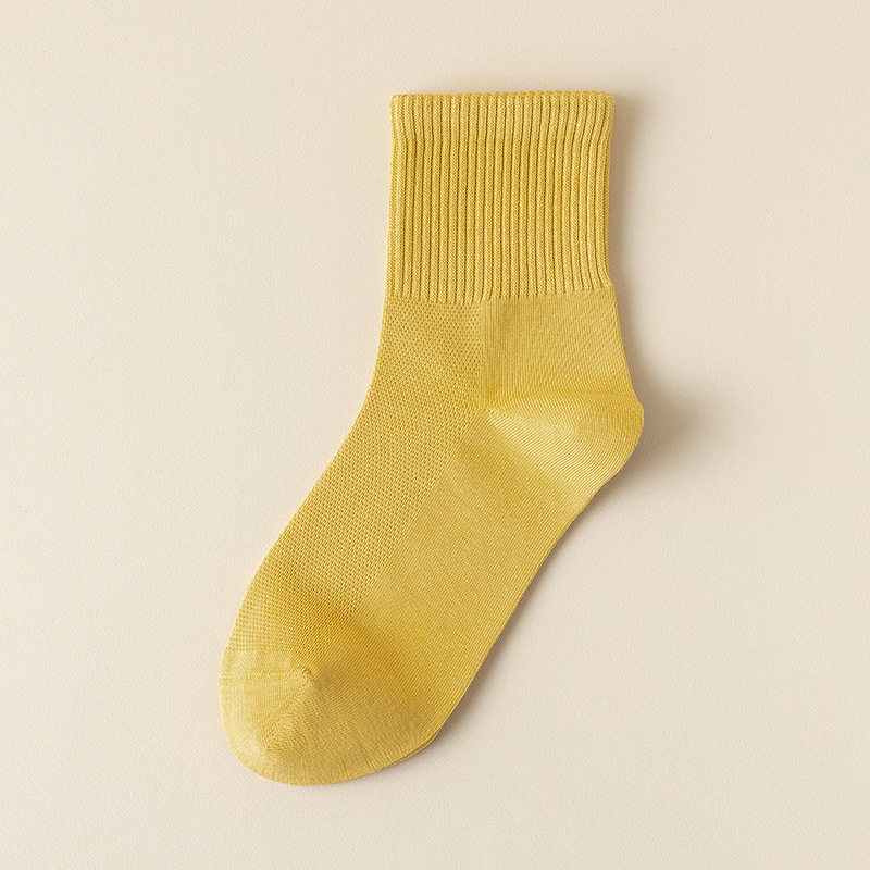 Solid Color Simple Socks Women's Summer Mesh Sweat-Absorbent Breathable Candy Color Mid-Calf Deodorant Women's Casual All-Match Socks