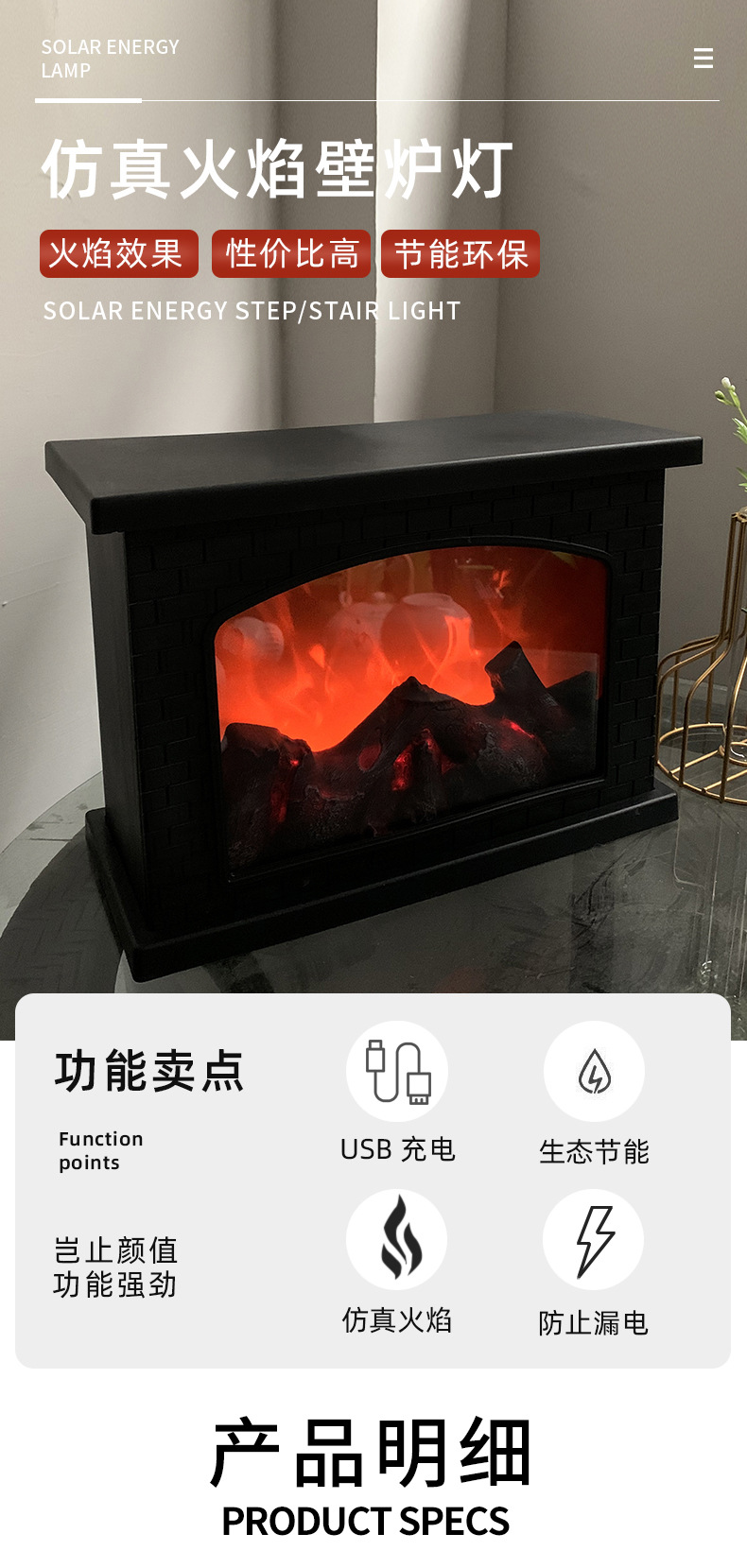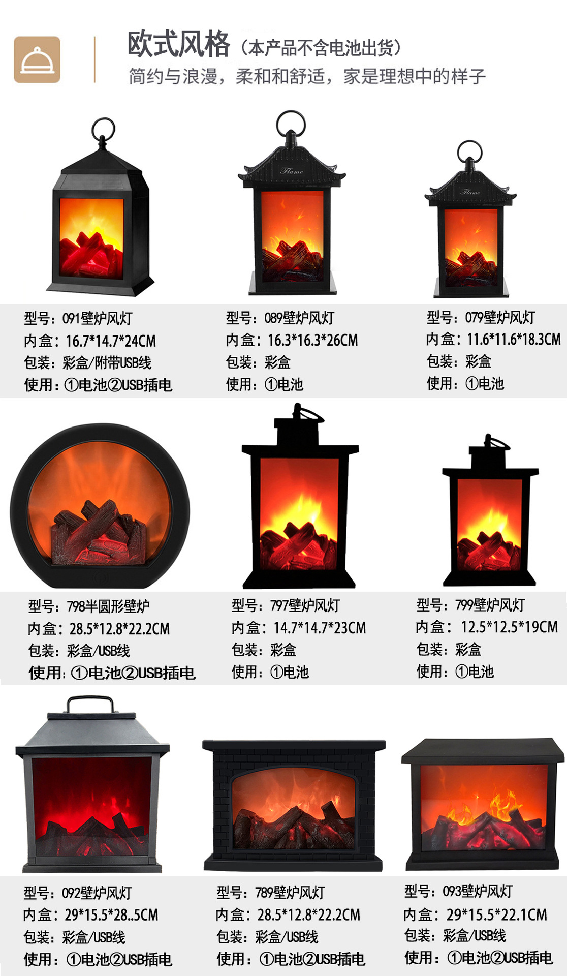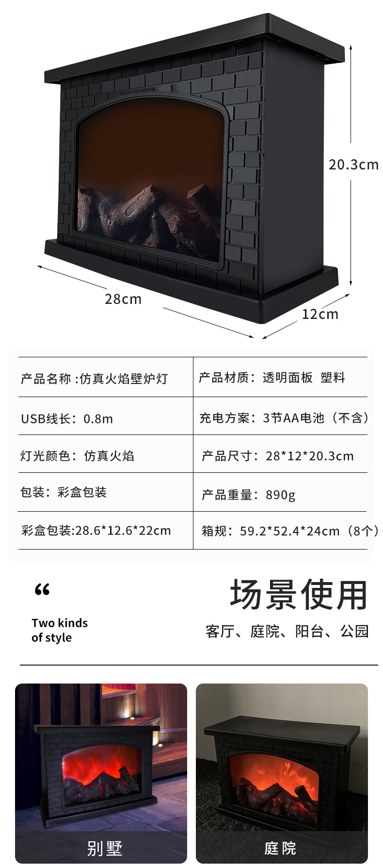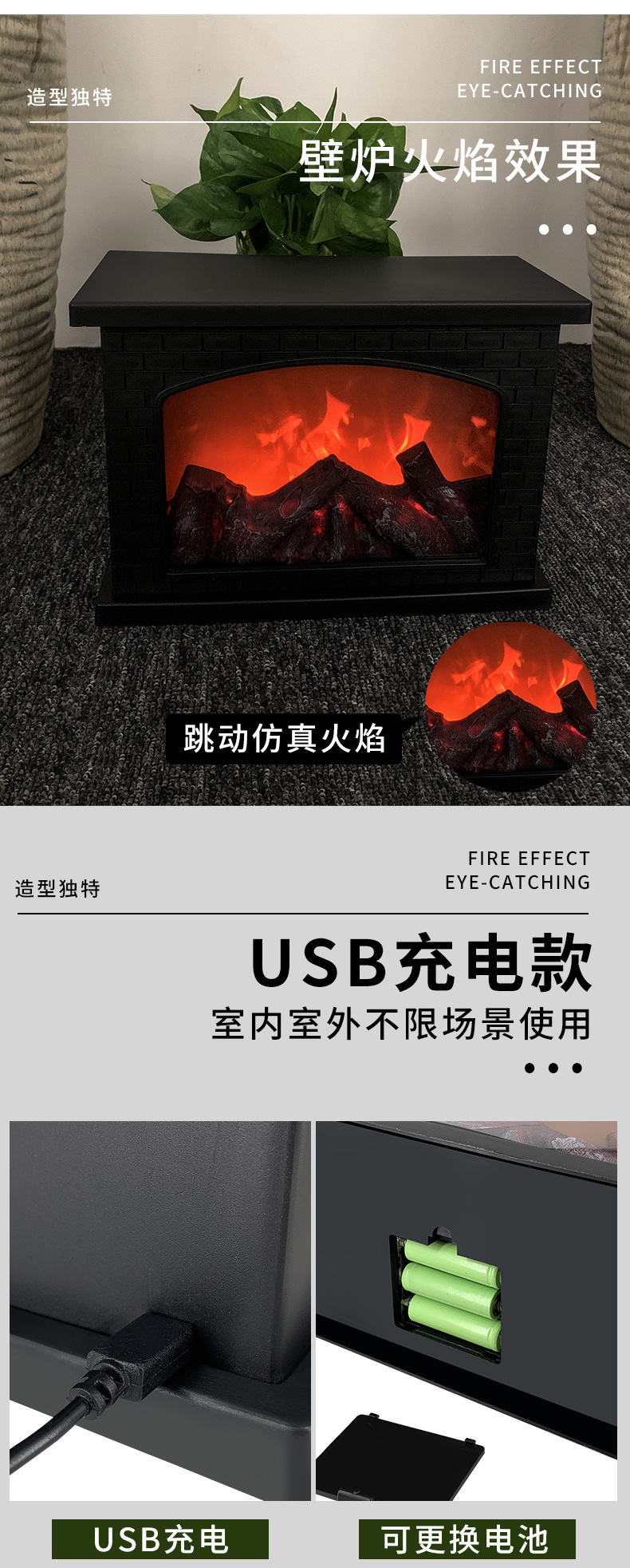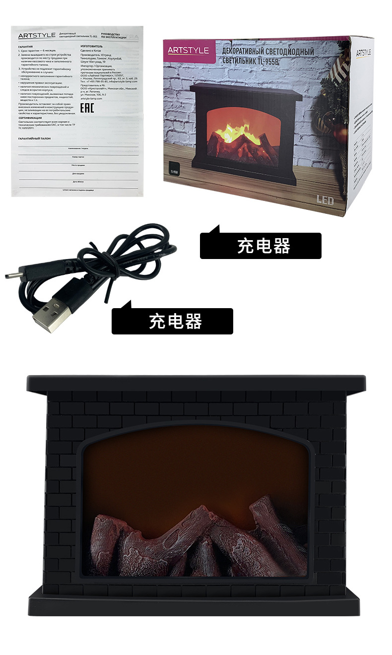 square fireplace storm lantern simulation flame charcoal household holiday ambience light bay window balcony decorative light battery charging