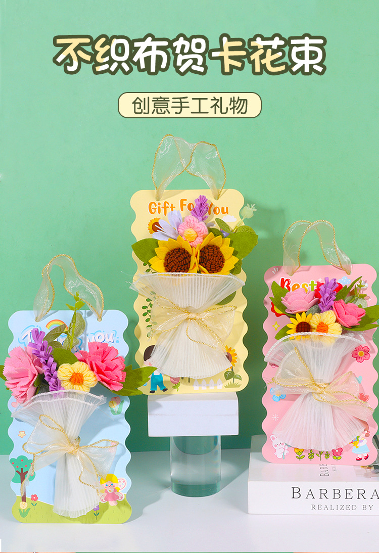 Preserved Fresh Flower Greeting Card Homemade DIY Non-Woven Fabric Wool Flowers Woven Children's Handmade Material Package Teacher's Day Gift