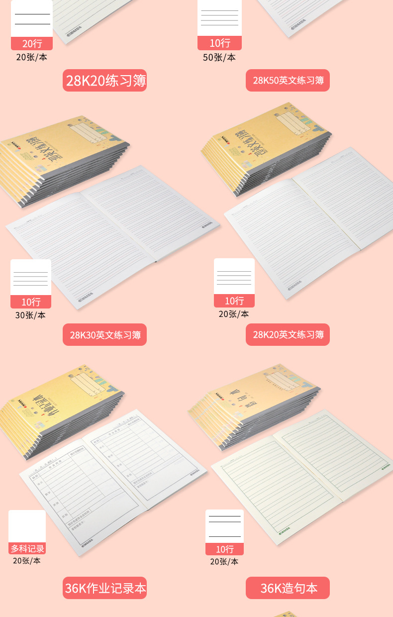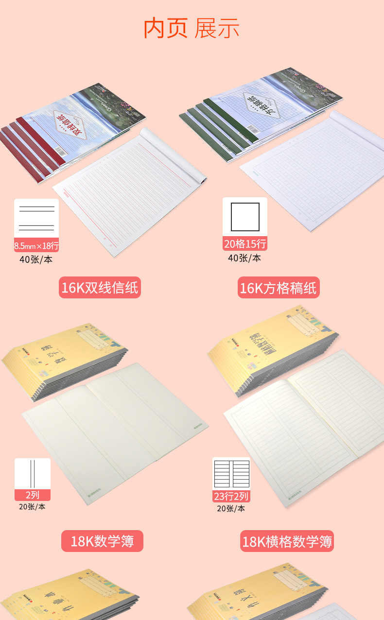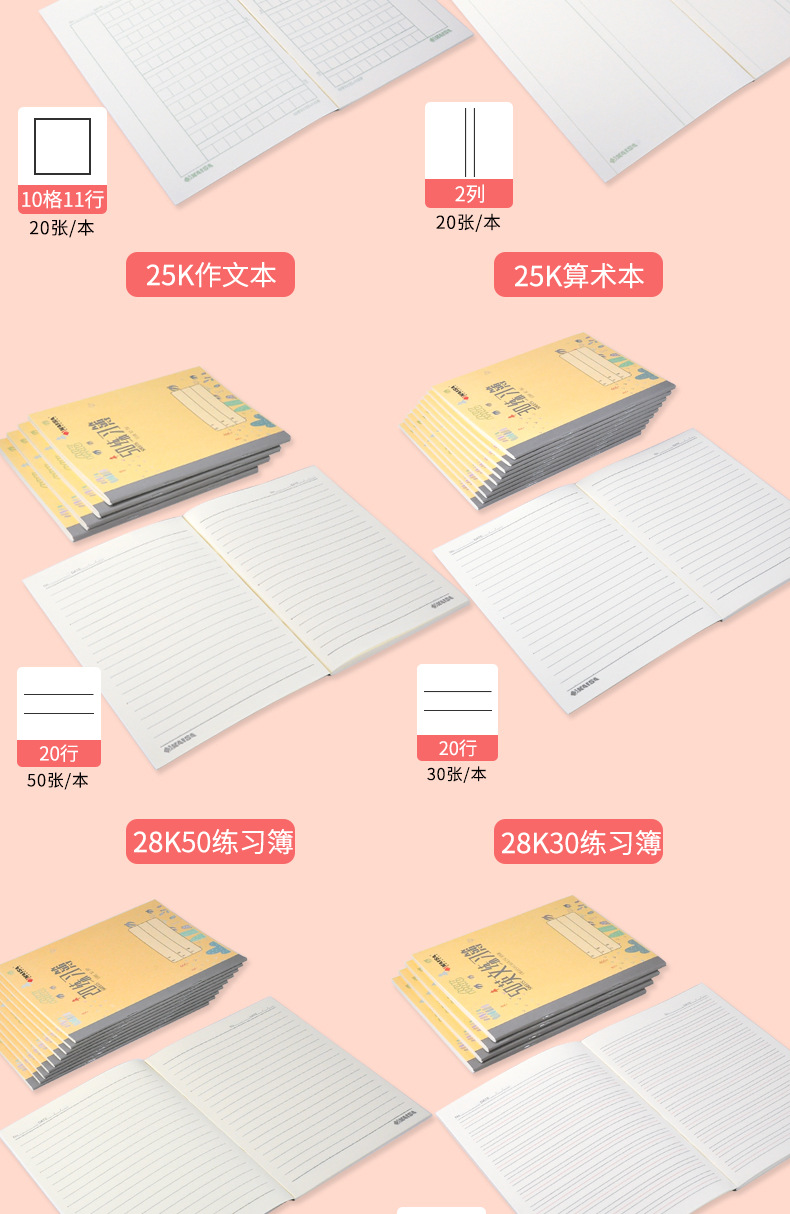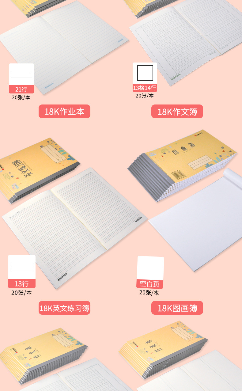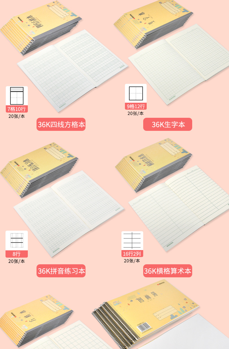Kaisa Student Exercise Book Kindergarten Pre-School English Pinyin Exercise Boys Math Square Frame Four Lines Squared Notebook