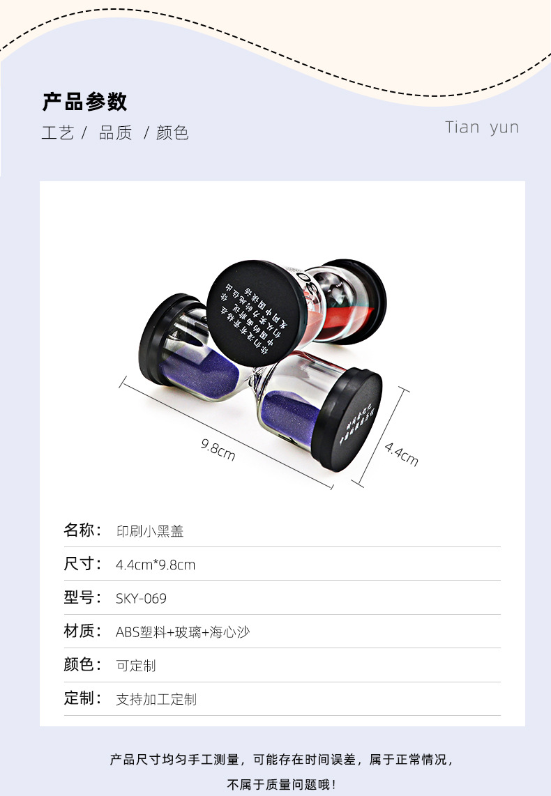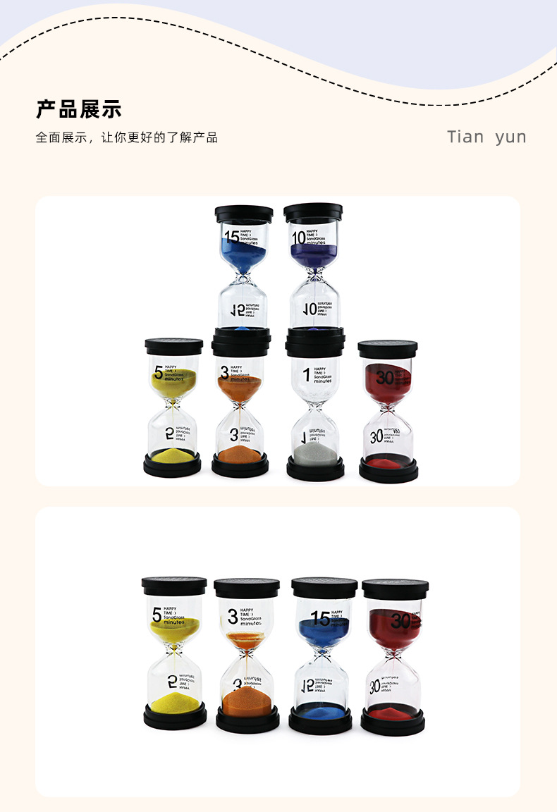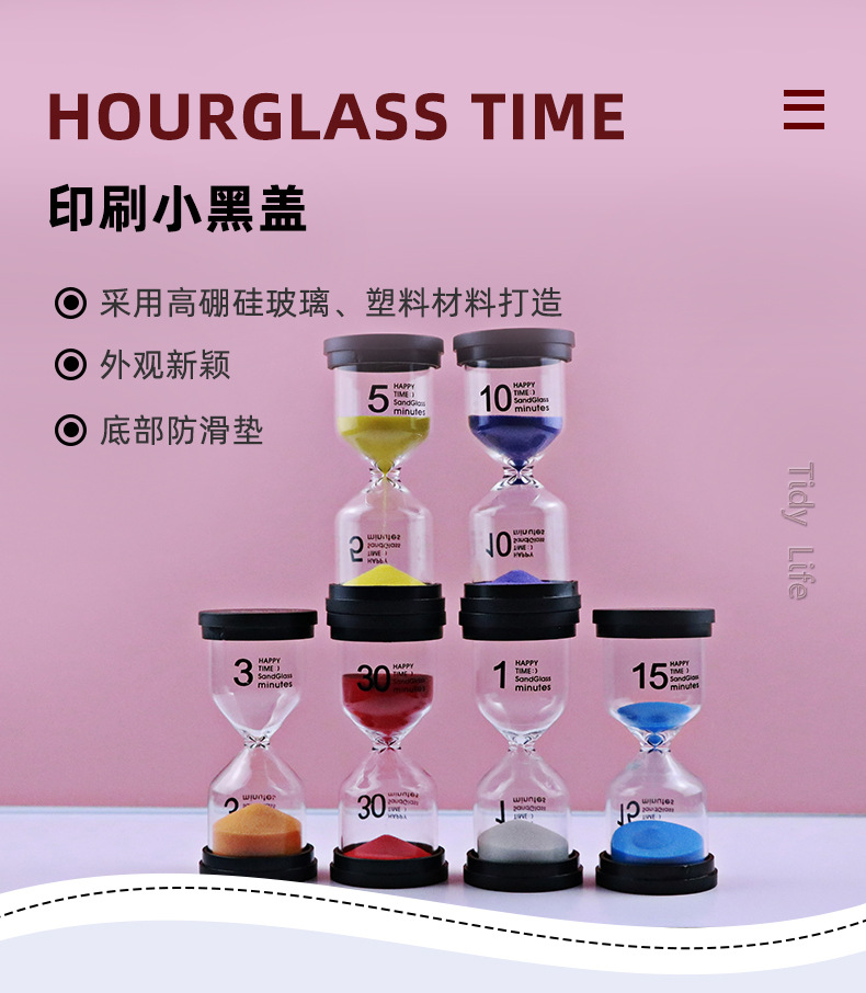 Wholesale 1/3/5 Minutes Black Cover Hourglass Kindergarten Gifts Brushing Small Sand Clock Timer Creative Decoration