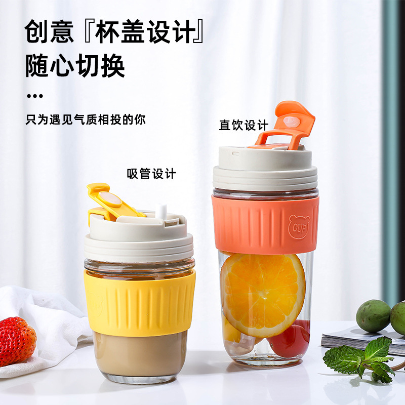 summer internet celebrity coffee cup portable cute handy water cup glass double drinking cup milk cup with straw