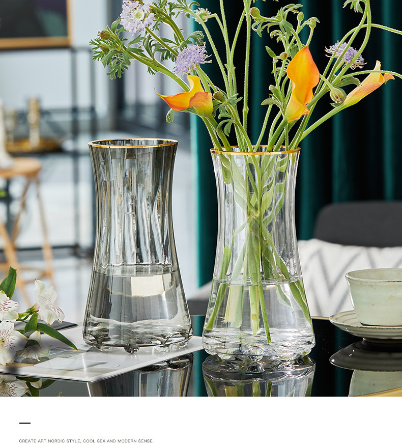 light luxury gold glass vase wholesale ins style flower arrangement ware creative waist girdle living room hydroponic decorations ornaments