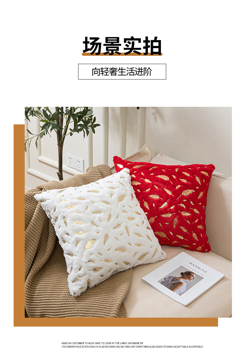Double-Sided Feather Bronzing Plush Pillowcase Cross-Border Amazon Home Nordic Sofa Cushion Office Cushion Cover