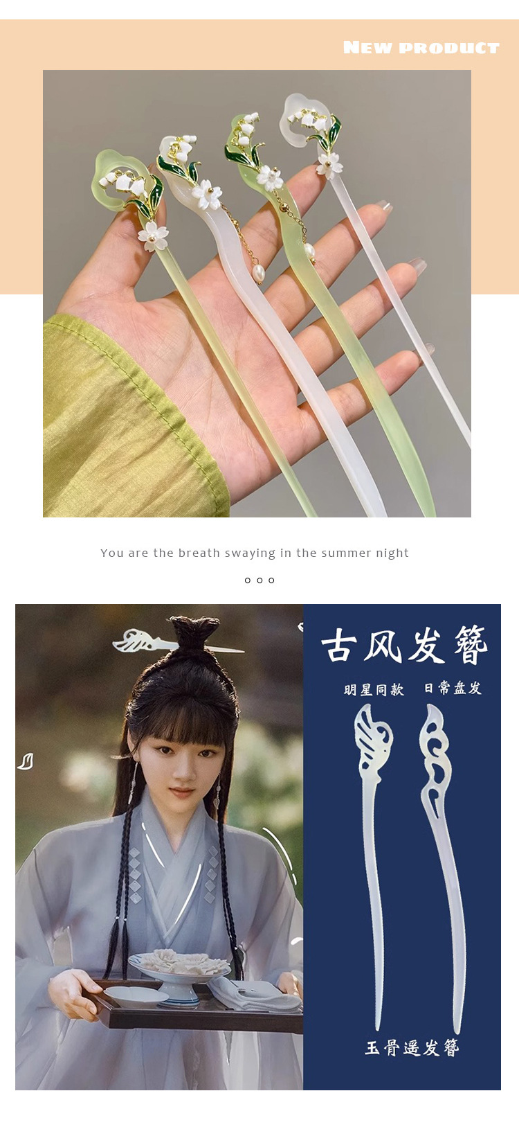 Yugu Yao Shiying Same Style Hairpin for Women Ancient Style Updo Hairpin Headdress for Han Chinese Clothing Simple New Chinese Style High Sense Hair Clasp
