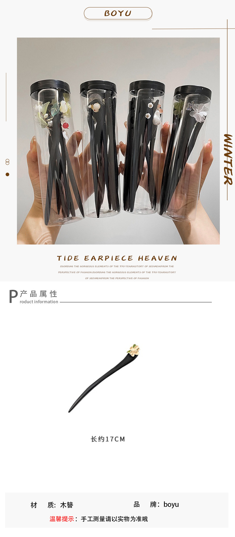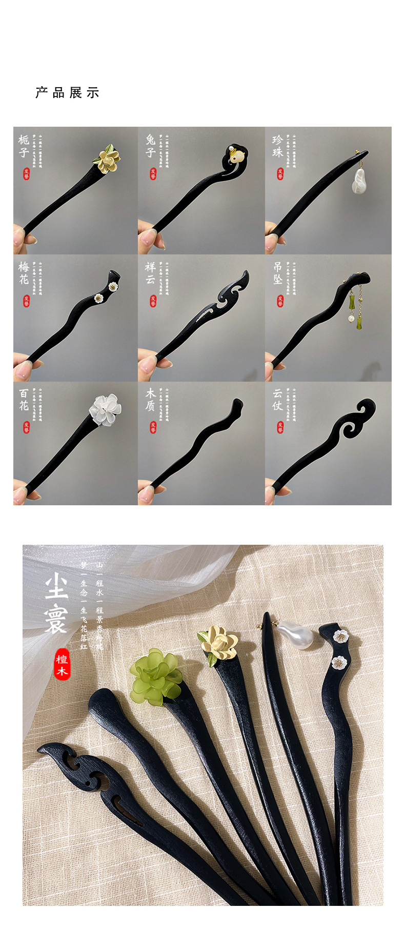 New Chinese Style Hairpin Women's Simple Hairpin Ancient Style Hair Clasp Blackwood Hair Clasp Daily Updo Wooden Hair Clasp Chinese Style Ornaments