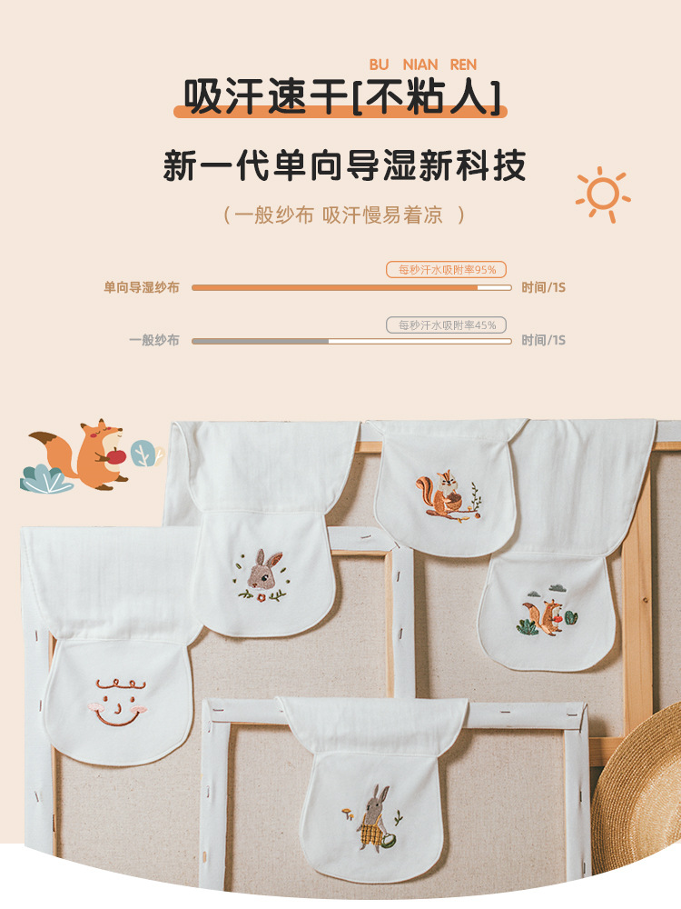 Class A Handkerchief Children's Cotton Kindergarten Sweat Towel Handkerchief Summer Embroidery Baby Sweat Towel Boys Baby Back Towel Thin