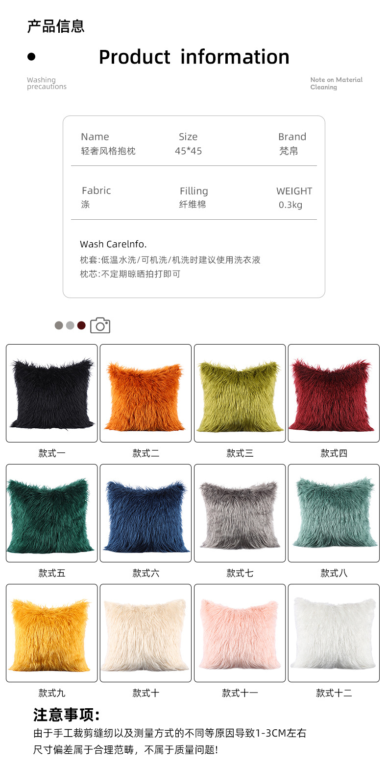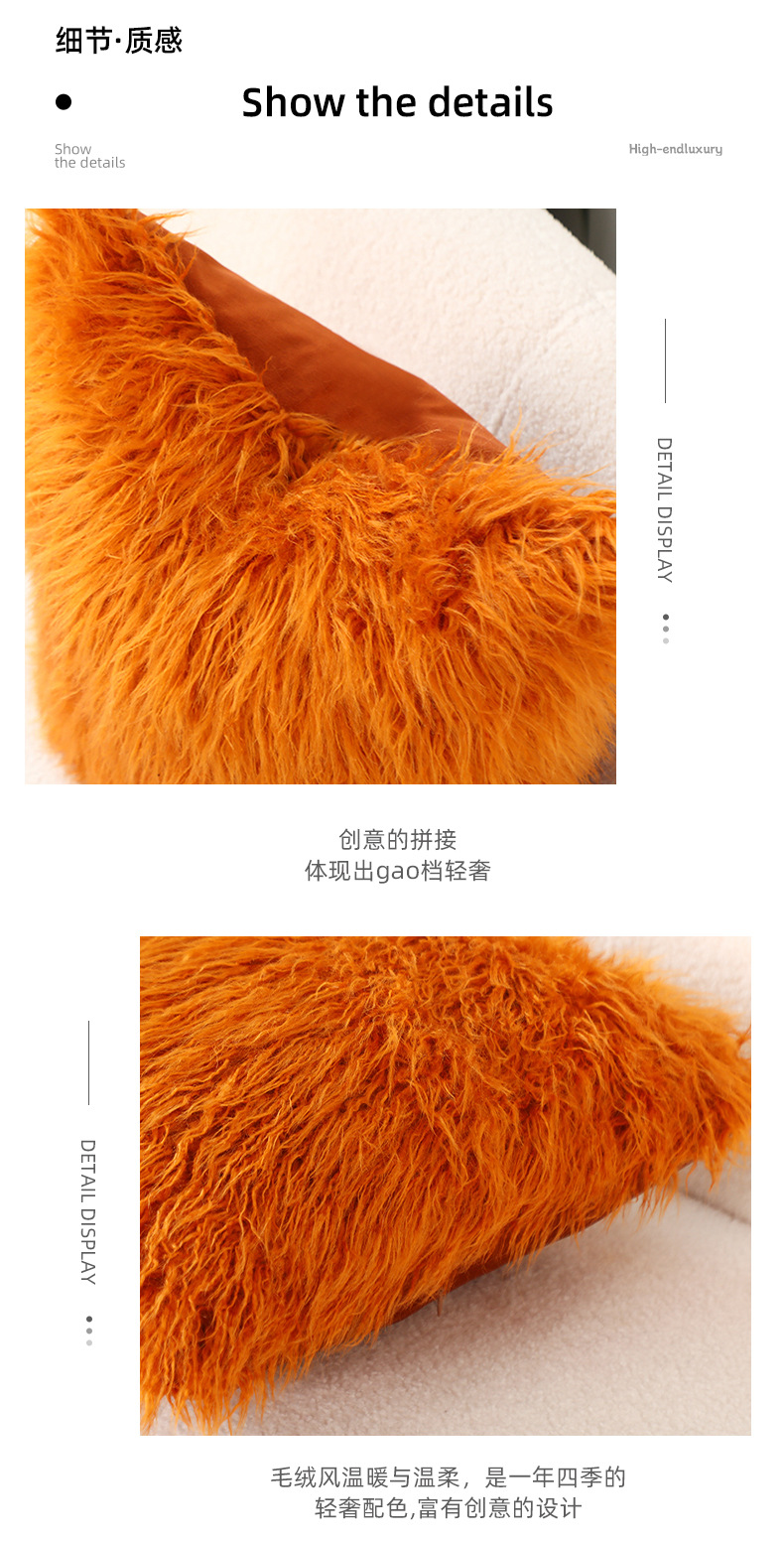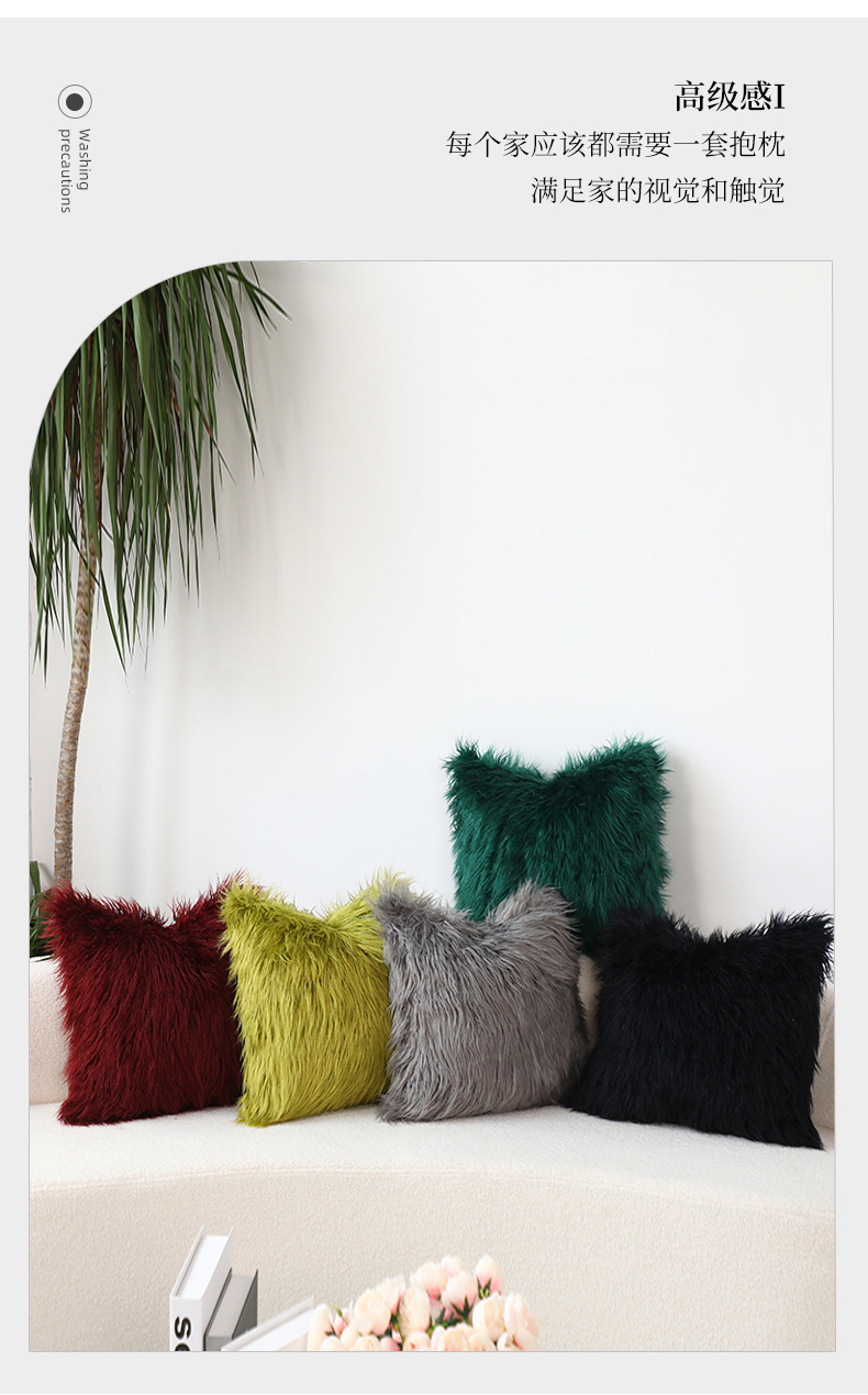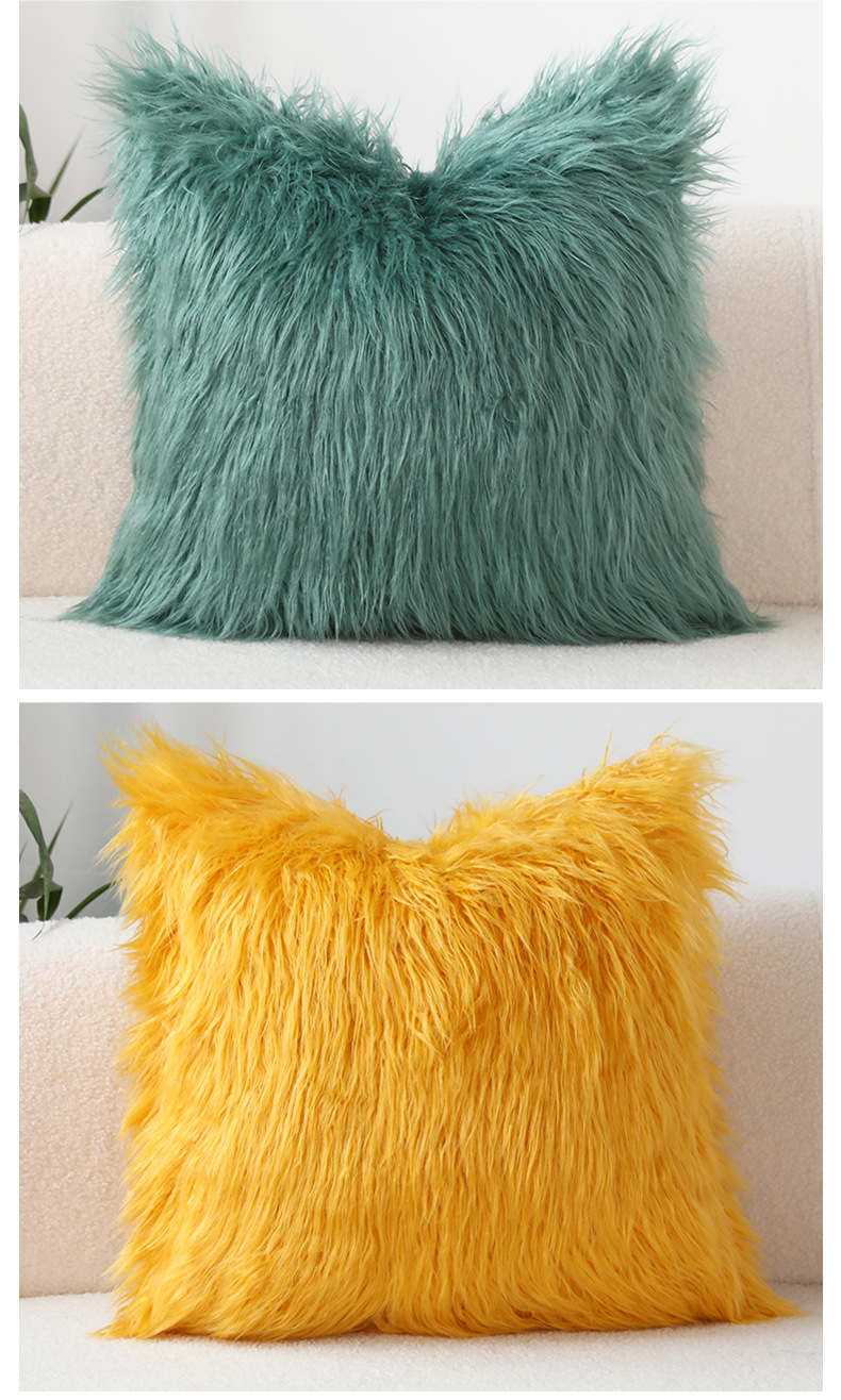 INS Plush Pillow Cover Simple Wool Sofa Cushion Cover Cute Waist Pad Internet Celebrity Solid Color Throw Pillowcase Wholesale