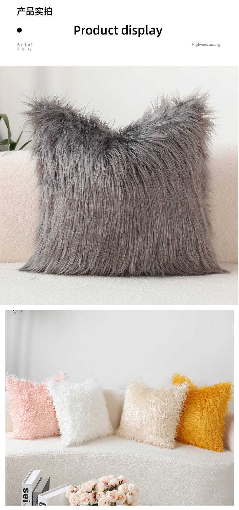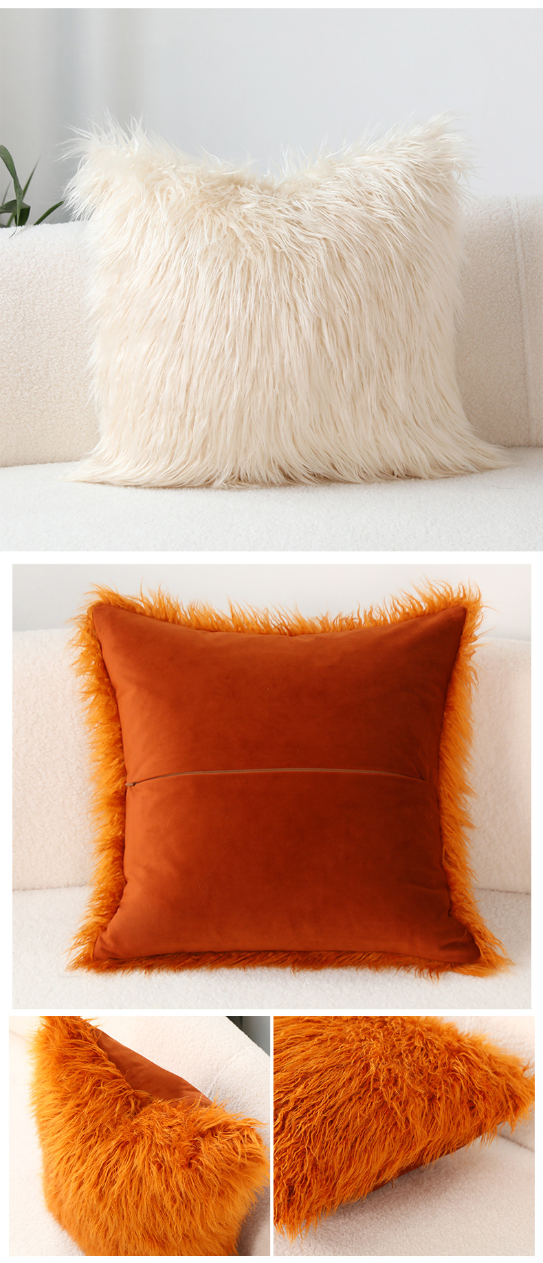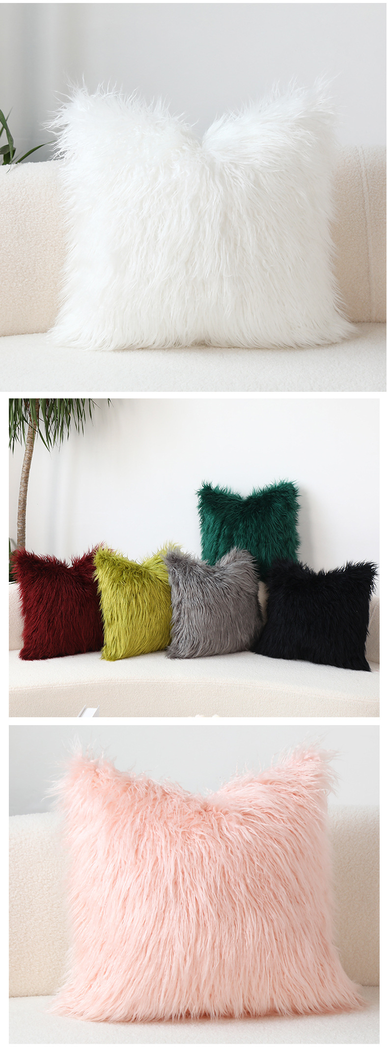 INS Plush Pillow Cover Simple Wool Sofa Cushion Cover Cute Waist Pad Internet Celebrity Solid Color Throw Pillowcase Wholesale