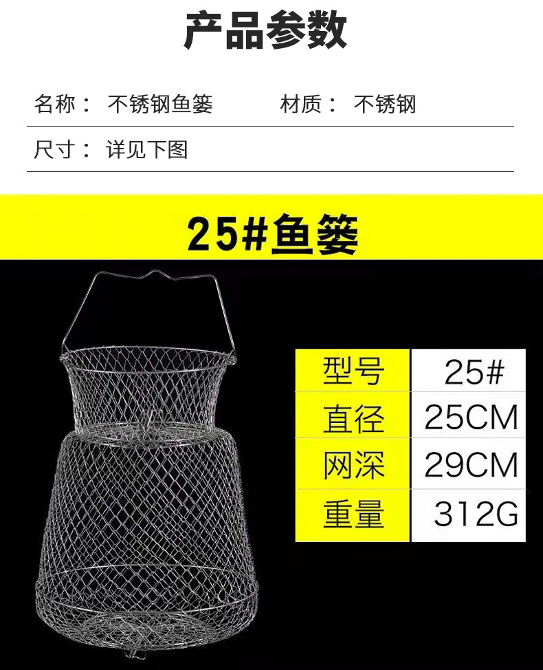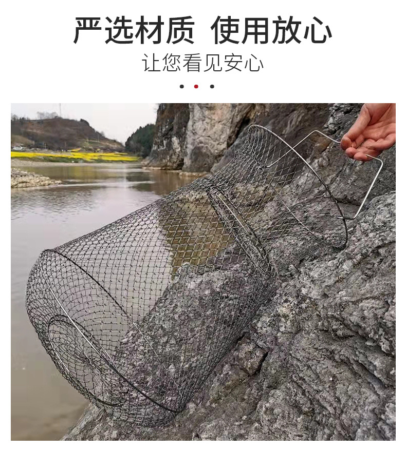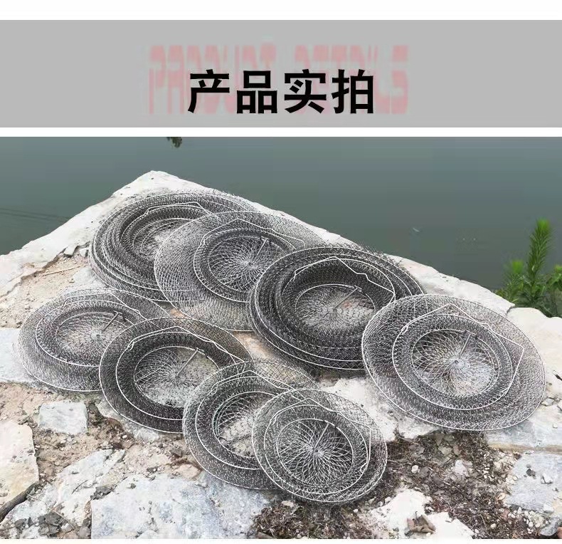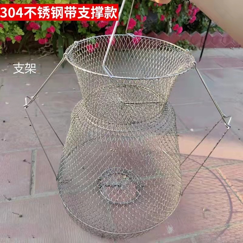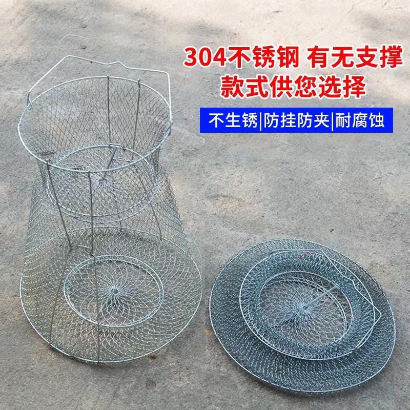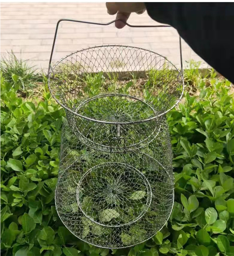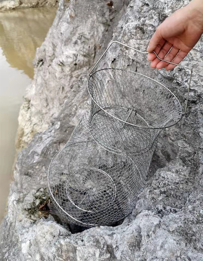 Folding Steel Wire Fish Protection Fish Basket Net Bag Fishing Protection Fishnet Put Fish Metal Stainless Steel Fish Cage Fish Protection Seawater Available