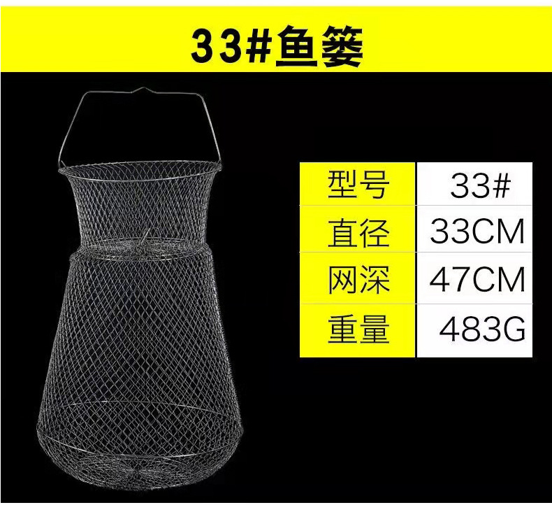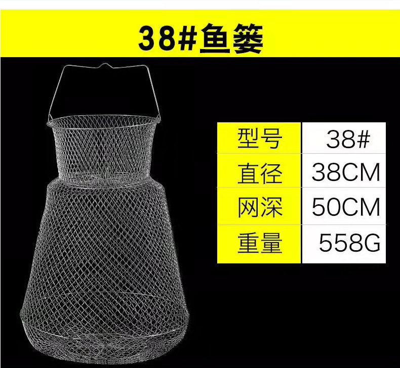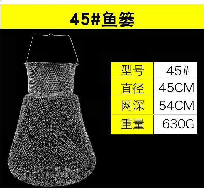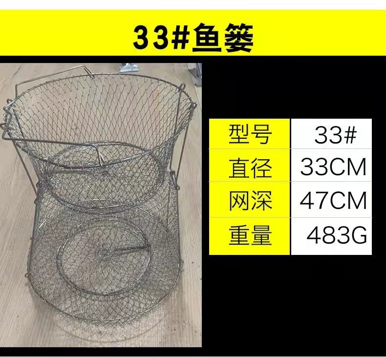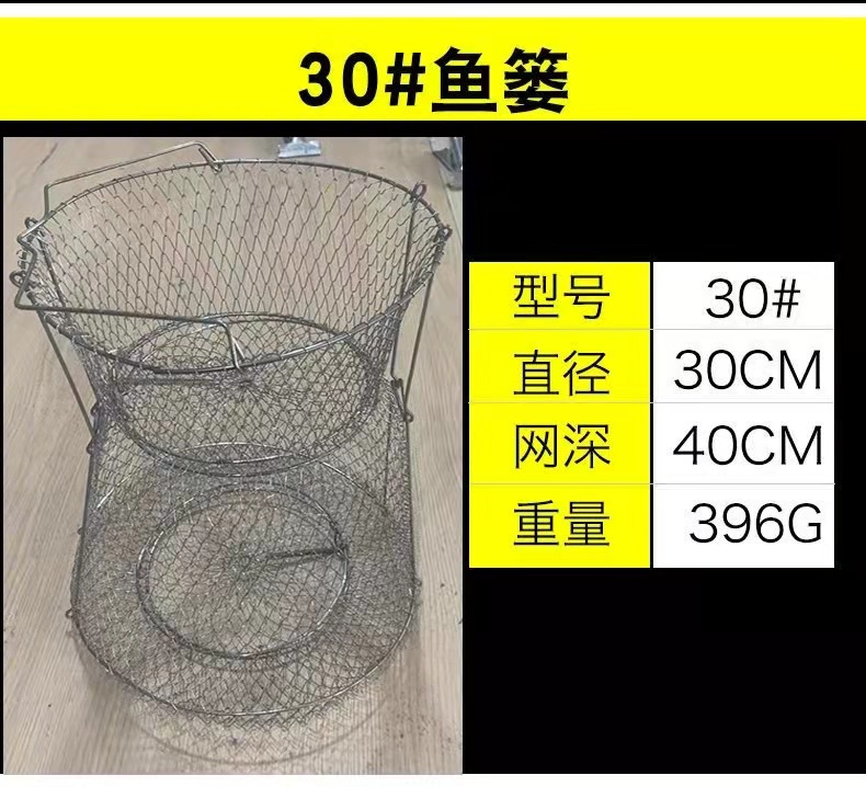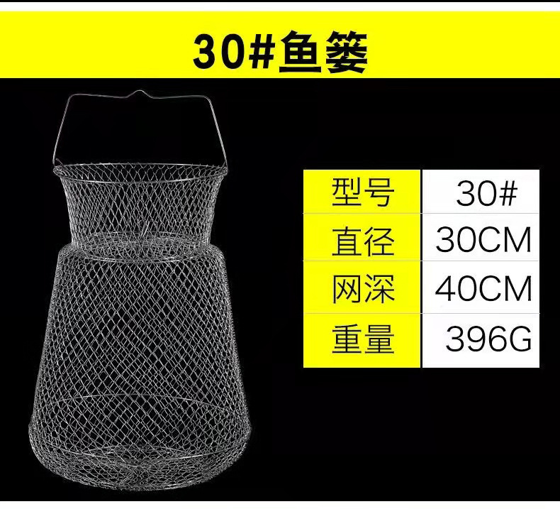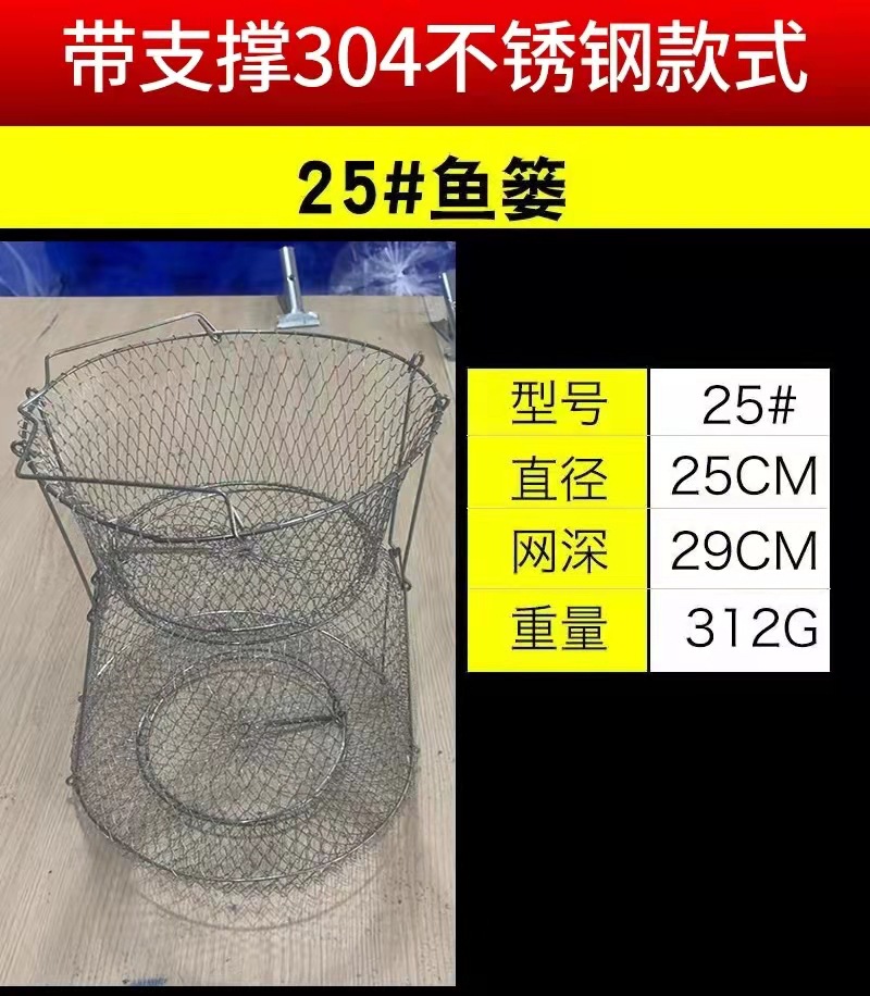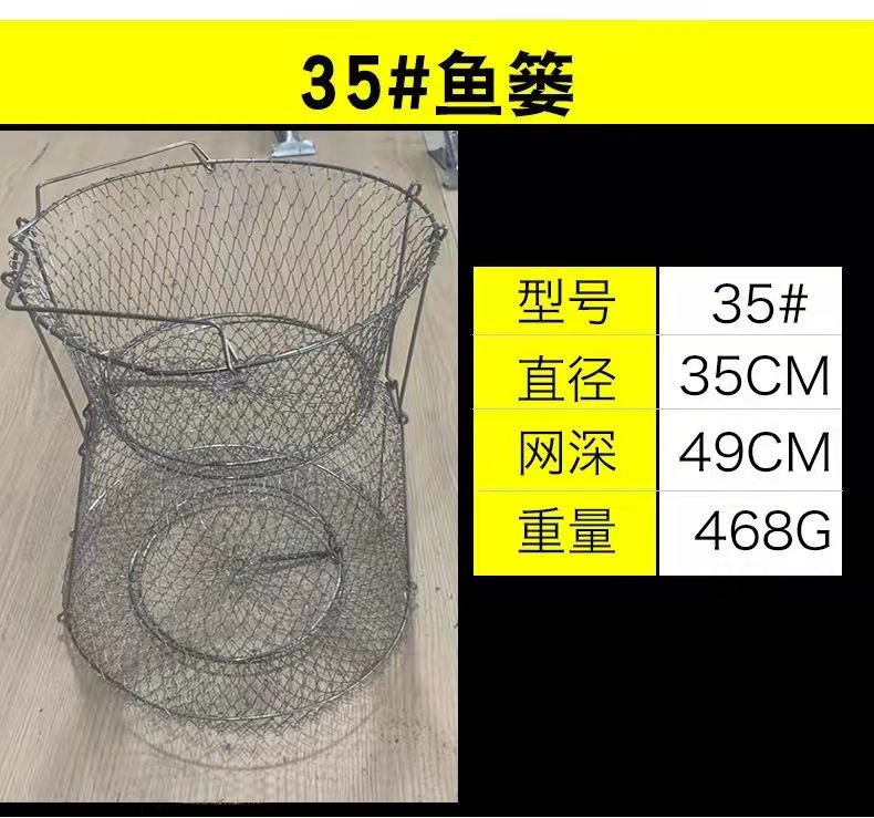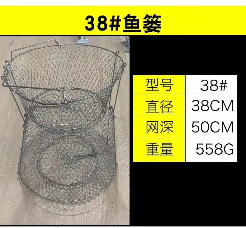 Folding Steel Wire Fish Protection Fish Basket Net Bag Fishing Protection Fishnet Put Fish Metal Stainless Steel Fish Cage Fish Protection Seawater Available