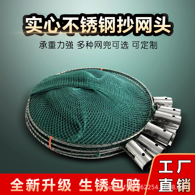 Factory Direct Supply Dip Net Fishing Net Solid Stainless Steel Dip Net Head Breeding Fish Catching Deepening Large Goods Dip Net Bag Wholesale