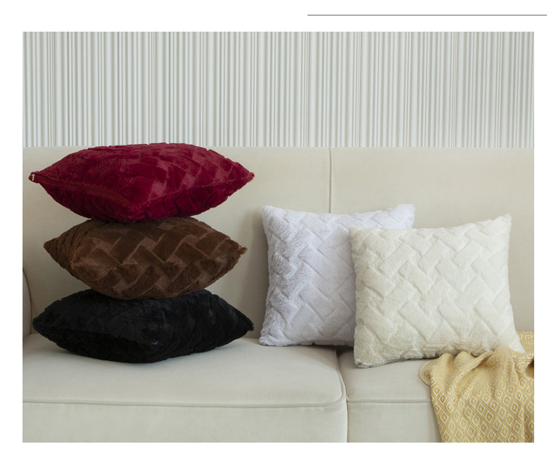 Solid Color Plush Pillow Cover Modern Minimalist Sofa Cushion Cushion Waist Pillow Cross-Border Ins One Piece Dropshipping