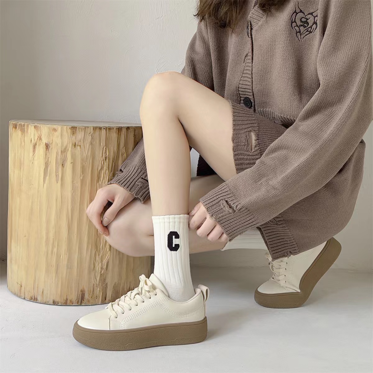 Socks Women's Mid Tube Stockings Autumn and Winter New Ins Fashionable Outdoor Shark Panty-Hose C Letter Personality All-Match Long Tube