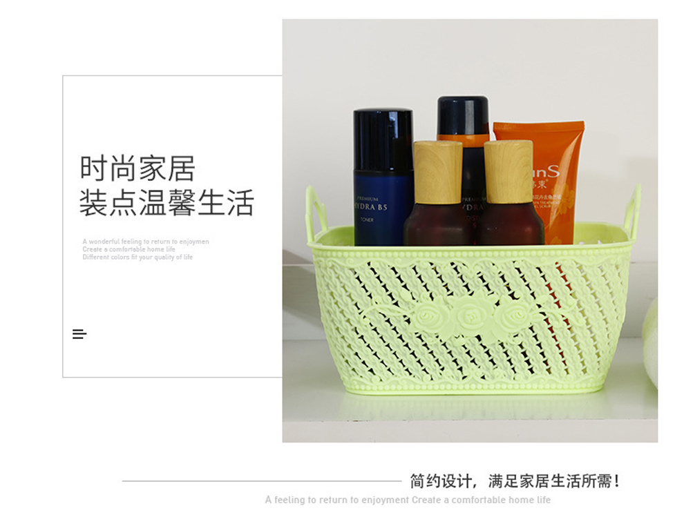 Product Name: Imitation Rattan Lattice Bathroom Storage Basket Home Desktop Organizer Plastic Storage Basket Rectangular Miscellaneous Basket